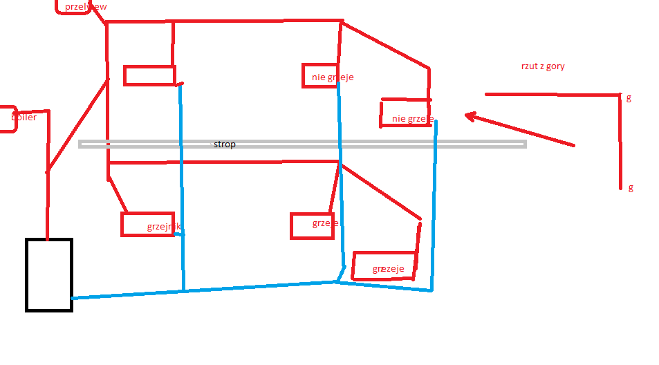 #2 15960901 28 Wrz 2016 21:07 electroshock electroshock Poziom 13 Pomocny post? (0) #2 15960901 28 Wrz 2016 21:07 A kiedyś grzało? W sensie, czy to nowa instalacja? Jeśli grzało, a teraz nie, to zapowietrzone grzejniki. A jeśli to nowa instalacja, to zimne grzejniki są za daleko i grawitacyjnie działać nie będzie. Jakiej średnicy są "piony"?