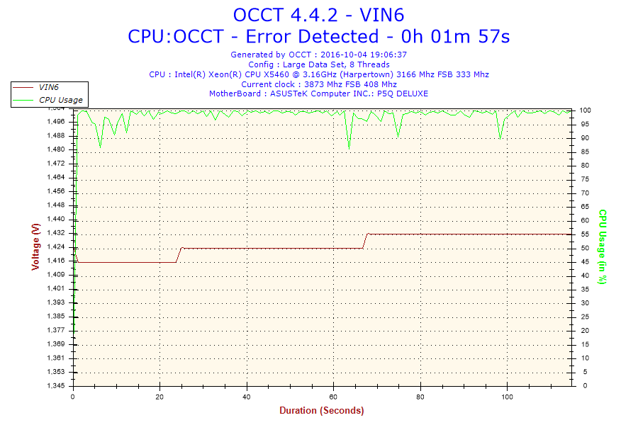 Ustawiłem FSB procesora na 400Mhz czyli 3800Mhz -> napięcie procesora 1.25V