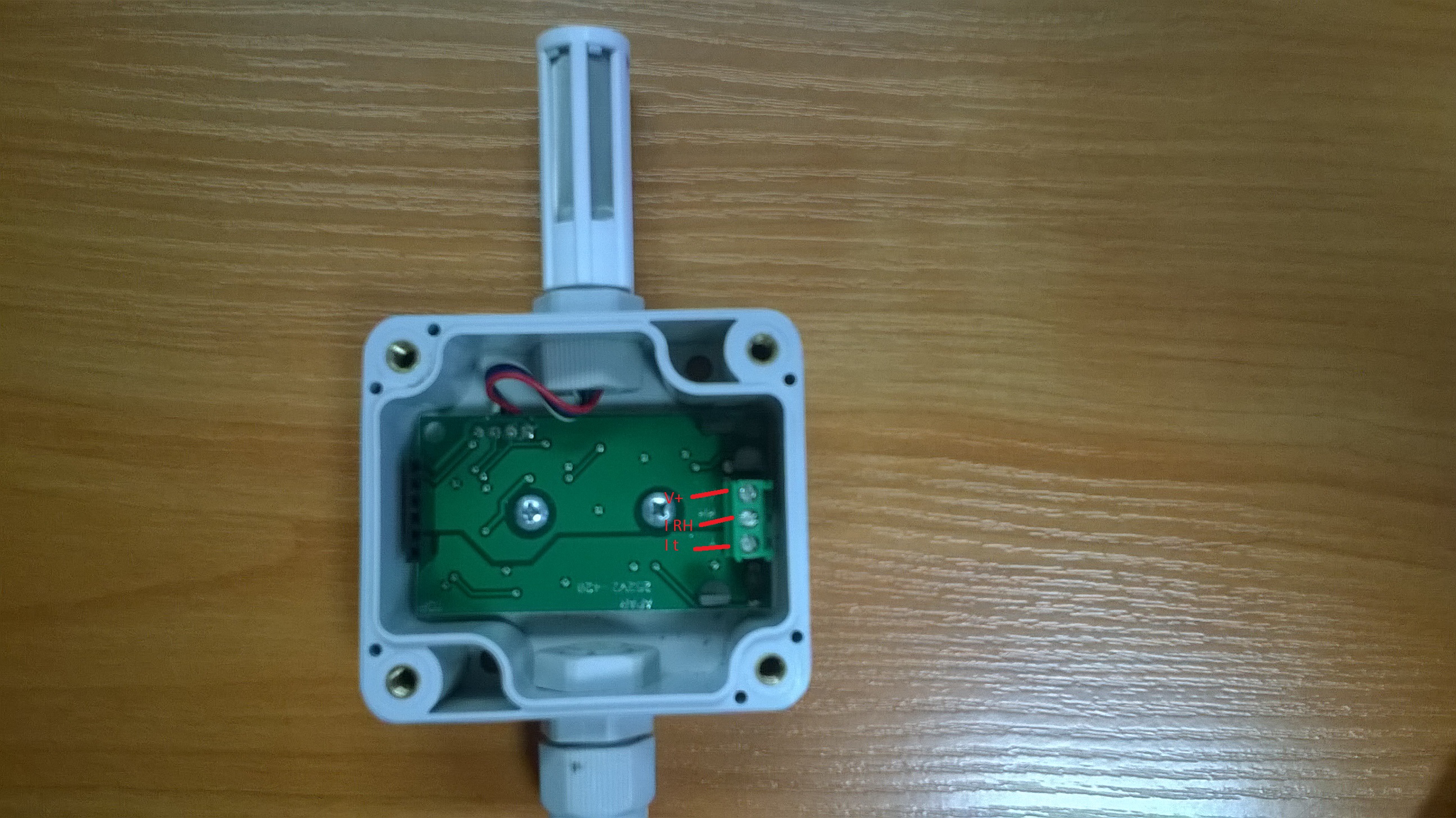 Chcę podłączyć termohigrometr z panelem odczytowym, który zacisk z którym połączyć żeby działało?