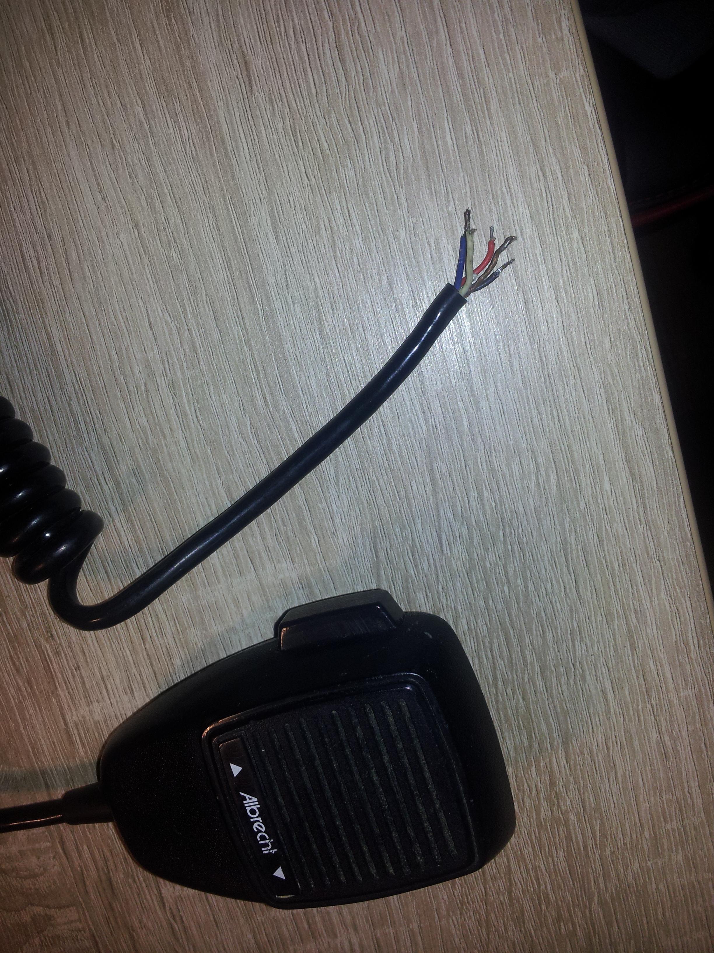 Dostałem Cb radio Uniden 520XL, do niego dołączony był mikrofon ALBRECHT z urwaną wtyczką. Radio ma wejście na mikrofon 4 piniowe. Natomiast z mikrofonu wychodzi 5 przewodów.