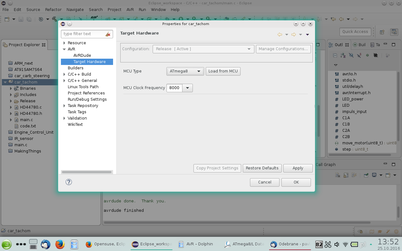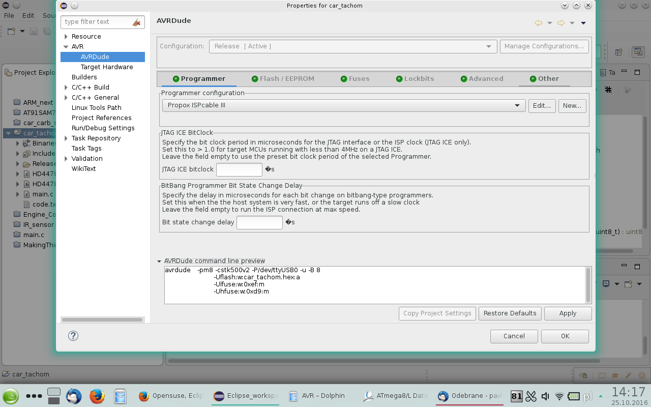 Poderzewam więc iż gdzieś musiałem zrobić jakiś czeski błąd lub w nowym Eclpse/ AVRdude czy czymkolwiek innym jest jakaś nieznana mi opcja konfuguracyjna.