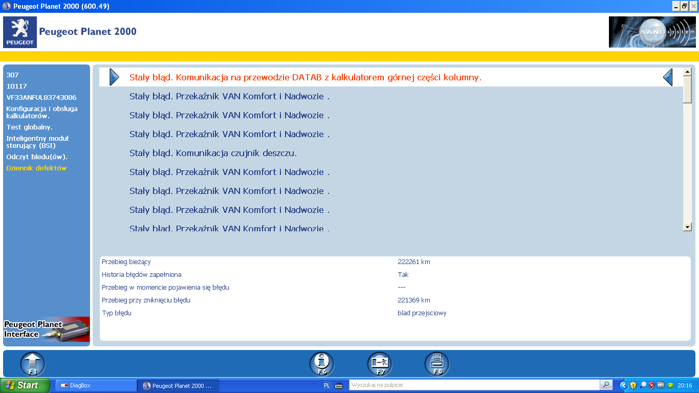 Witam. Posiadam Peugeota 307 1.6 benzyna z 2004 roku. Od jakiegoś czasu trpi mnie błąd airbag, PP2000 pokazuje: "błąd w komunikacji sieci VAN". Błąd zazwyczaj nie jest stały, czasami występuje zaraz po odpaleniu, czasami po jakimś czasie. Dodam tylko że w okolicach marca miałem zalane BSI. Wyczyściłem je kontaktem, łącznie ze złączami i od tamtej pory nic się nie działo aż do teraz. Co do tej pory zostało zrobione: