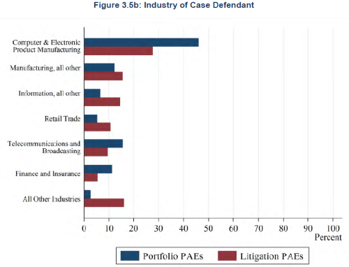 Komisja Handlu zanalizowała dane pochodzące z ponad 2500 spółek zajmujących się patentami i licencjami i prześledziła ich poczynania od stycznia 2009 roku do połowy września 2014. Analiza wykazała, że 88% posiadanych patentów dotyczyła rynku elektronicznego, komputerowego i komunikacyjnego. Ponad 75% patentów dotyczy kwestii związanych z oprogramowaniem. Niezależne badania przeprowadzone przez komisję wykazały, że najbardziej agresywne przejmowanie i wykorzystanie patentów związane jest z sektorem komunikacji bezprzewodowej.