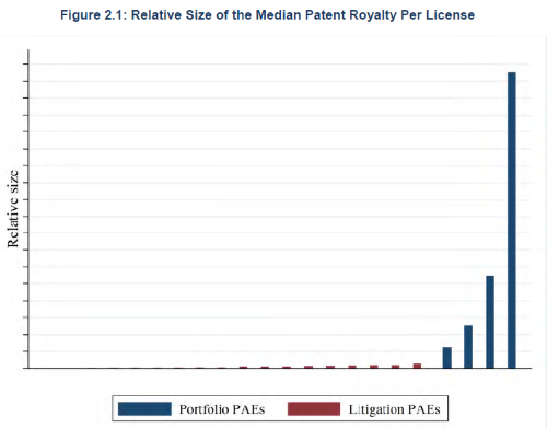 Inną klasą firm, są te, które skupiają w swoim portfolio setki czy nawet tysiące patentów. Firmy te - wydające zaledwie 9% badanych licencji - odpowiedzialne są za transakcje licencyjne warte setki milionów; zyski tych firm to pozostałe 80% sektora licencjodawców w badaniu. Ich zyski wynoszą około 3,2 miliarda dolarów. Firmy te rzadko pozywają innych w związku z nadużyciami patentowymi.