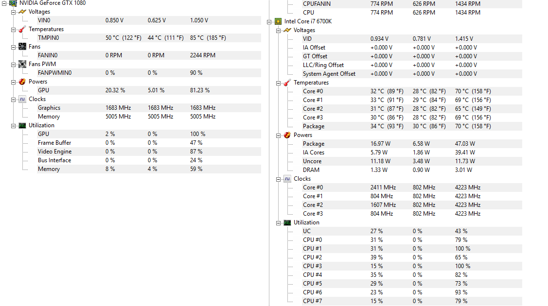 Mam problem z wysokimi temperaturami na i7-6700k na 4.2Ghz 1.2v mam 70* w stresie, a na 1080 msi gaming x podczas stresu 85*.