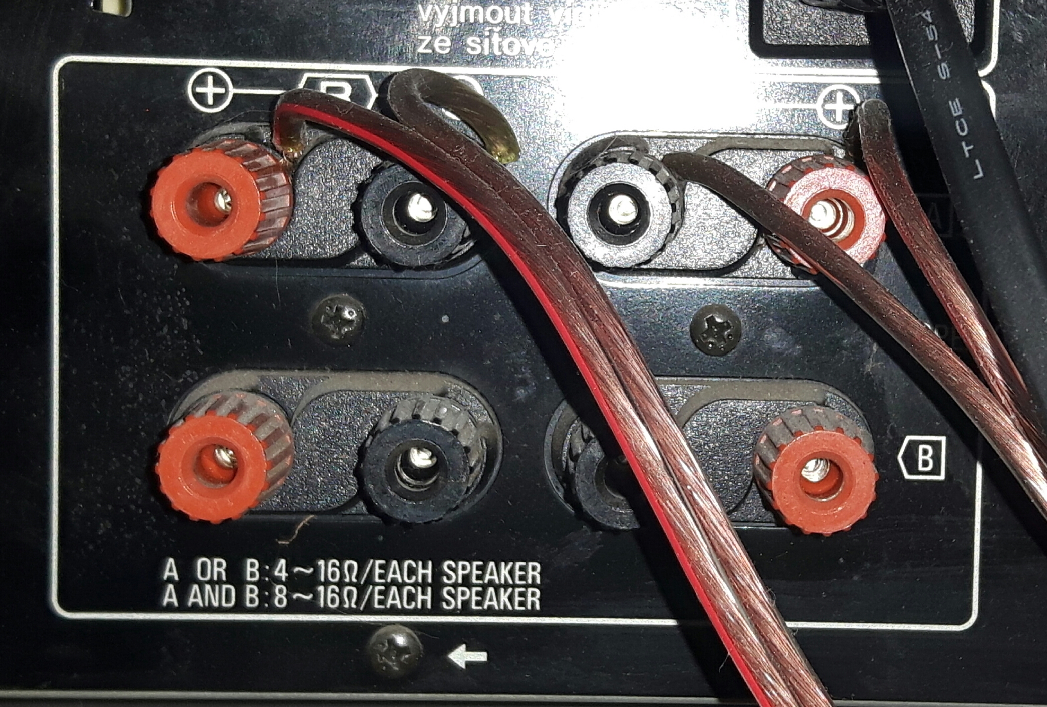 Nie, dziękuję Przekieruj mnie tamsylweksylwina napisał:Z tyłu wzmacniacza koło terminali głośnikowych masz napisane jaka musi być minimalna impedancja poszczególnych kolumn przy pracy "A and B". Podłączasz pod A oraz B i włączasz obydwa zestawy na panelu przednim. Dla pewności możesz zamieścić zdj. tyłu wzmacniacza.
