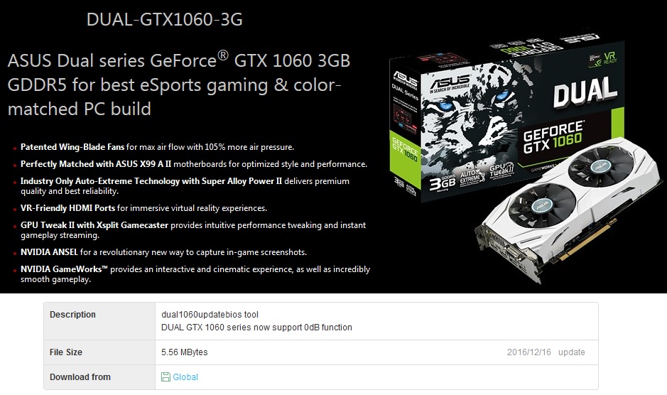 GPU: Asus GeForce GTX 1060 3GB. GDDR5