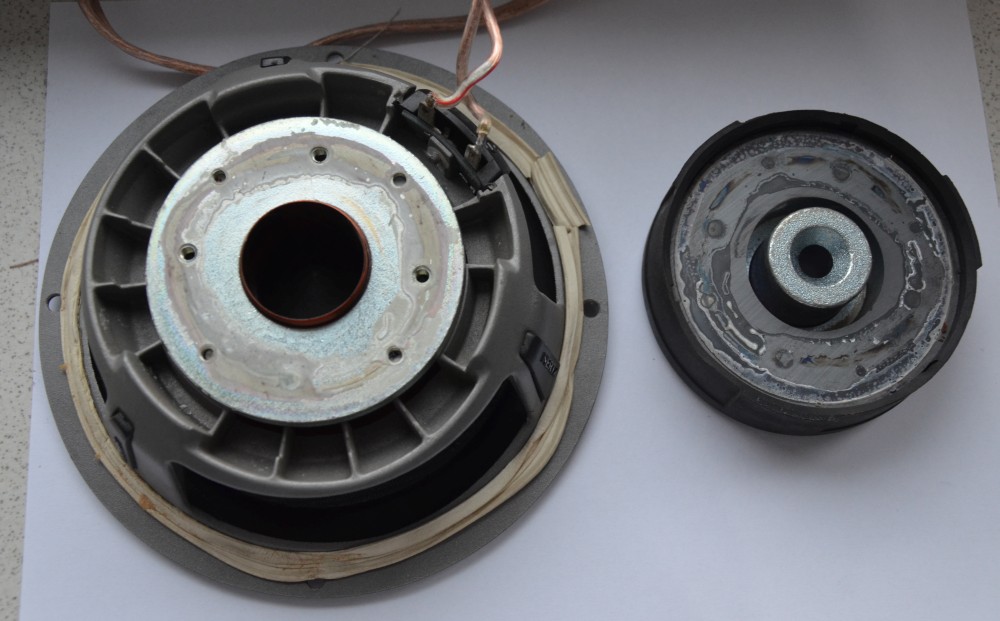 Po chwili zacząłem zdejmować gumę, która była na magnesie (taka dekoracyjna) i nagle głośnik dosłownie się rozpadł i mam dwie części a zarazem odpowiedź, co było powodem, że głośnik nie pracuje.
