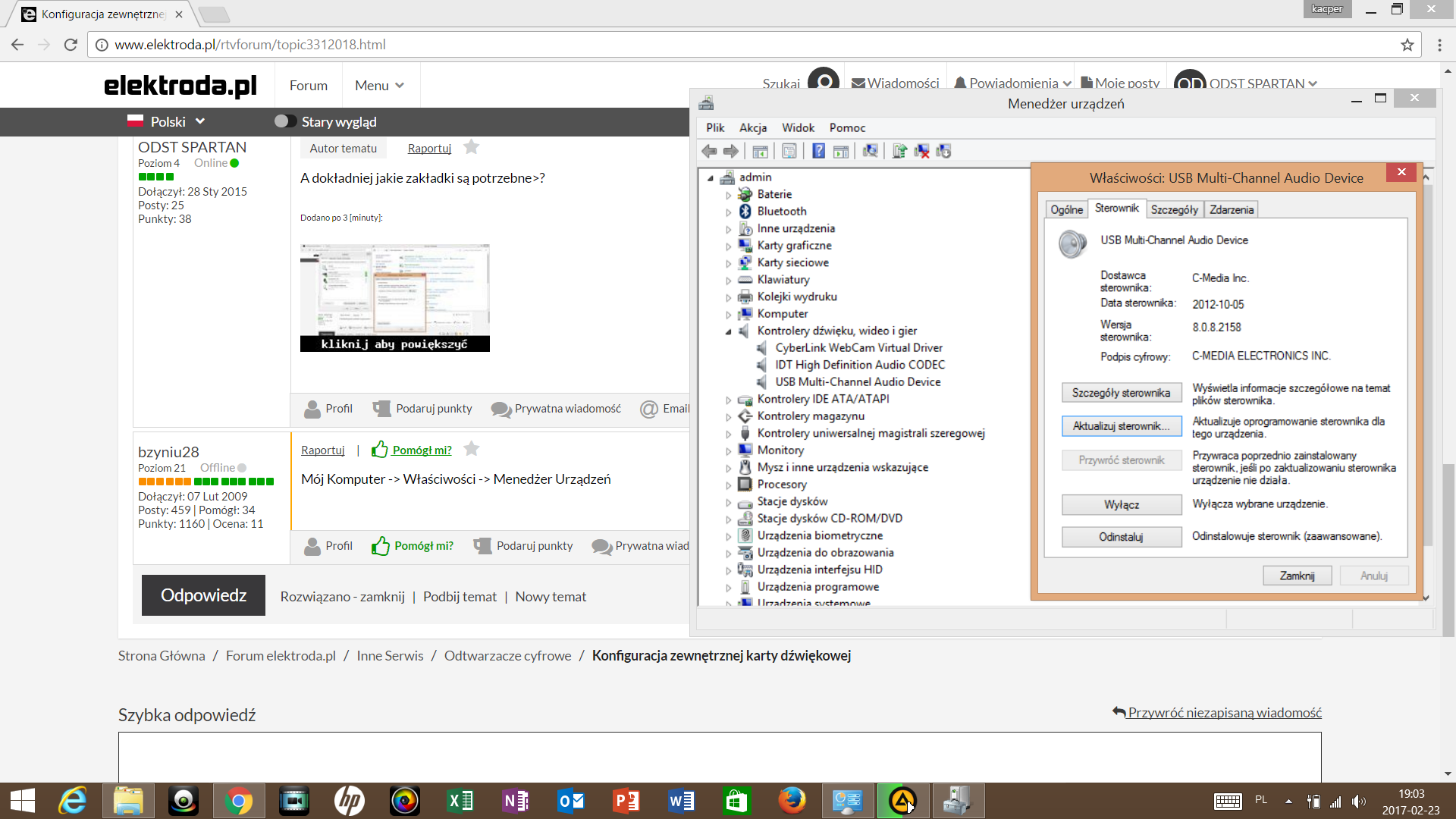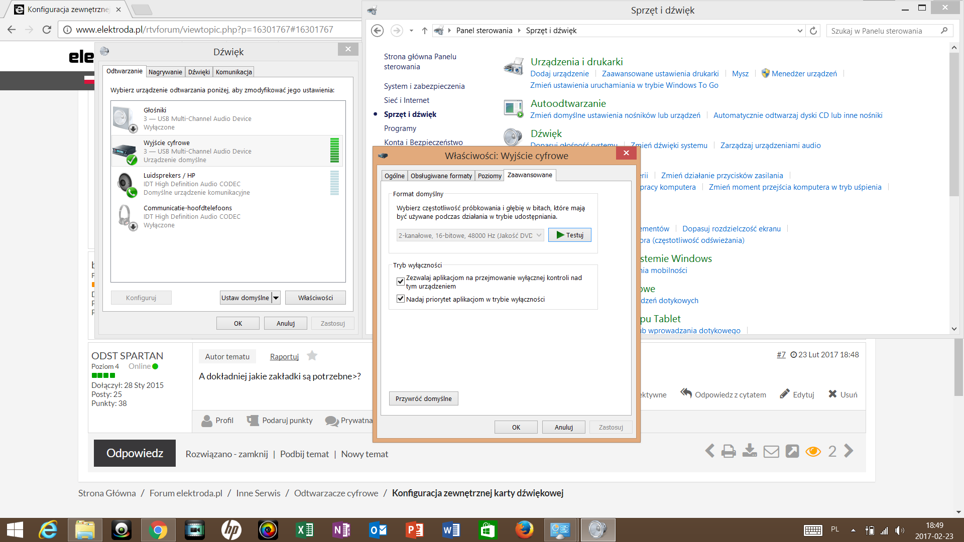 Siema wszystkim. Kupiłem ostatnio zewnętrzną kartę dźwiękową bo dorabiam sobie od jakiegoś czasu jako DJ amator, a posiadam kilka par głośników ale każdy ma osobną wtyczkę jack. Jako że jest to karta używana to nie dostałem do niej płytki tylko samo urządzenie i kabel zasilający, podejrzewam że na płytce był program do konfiguracji karty i tutaj pojawia się problem - karta daje wyjście dźwięku tylko na dwa porty (słuchawkowy i głośniki 2.1) zamiast na 5. Próba konfiguracji w panelu sterowania nic nie daje bo jest skonfigurowana tylko na 2 kanały, na screenie wszystko widać . Podaje link do karty oraz dorzucam screena z panelu sterowania