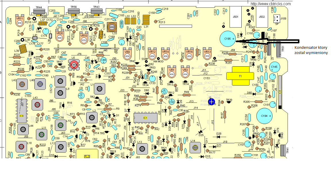 Mam pewien problem z CB radiem, po zakupie podlaczylem radio do 13.8V i przez przypadek zostal uszkodzony kondensator 1000µF 24V, radio ma zasilanie na mikrofon podlaczone z tylu przy wejsciu od zasilacza i jeden z pinow zrobil zwarcie, wiec podejrzewam ze dlatego kondensator wybuchl.