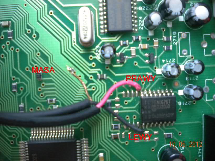 Podsyłam zdjęcia płyty głównej nie mojego autorstwa (proszę nie zwracać uwagi na czerwone kółka, linie), ale w 100% to to radio ponieważ korzystałem już z nich do wlutowania auxa.