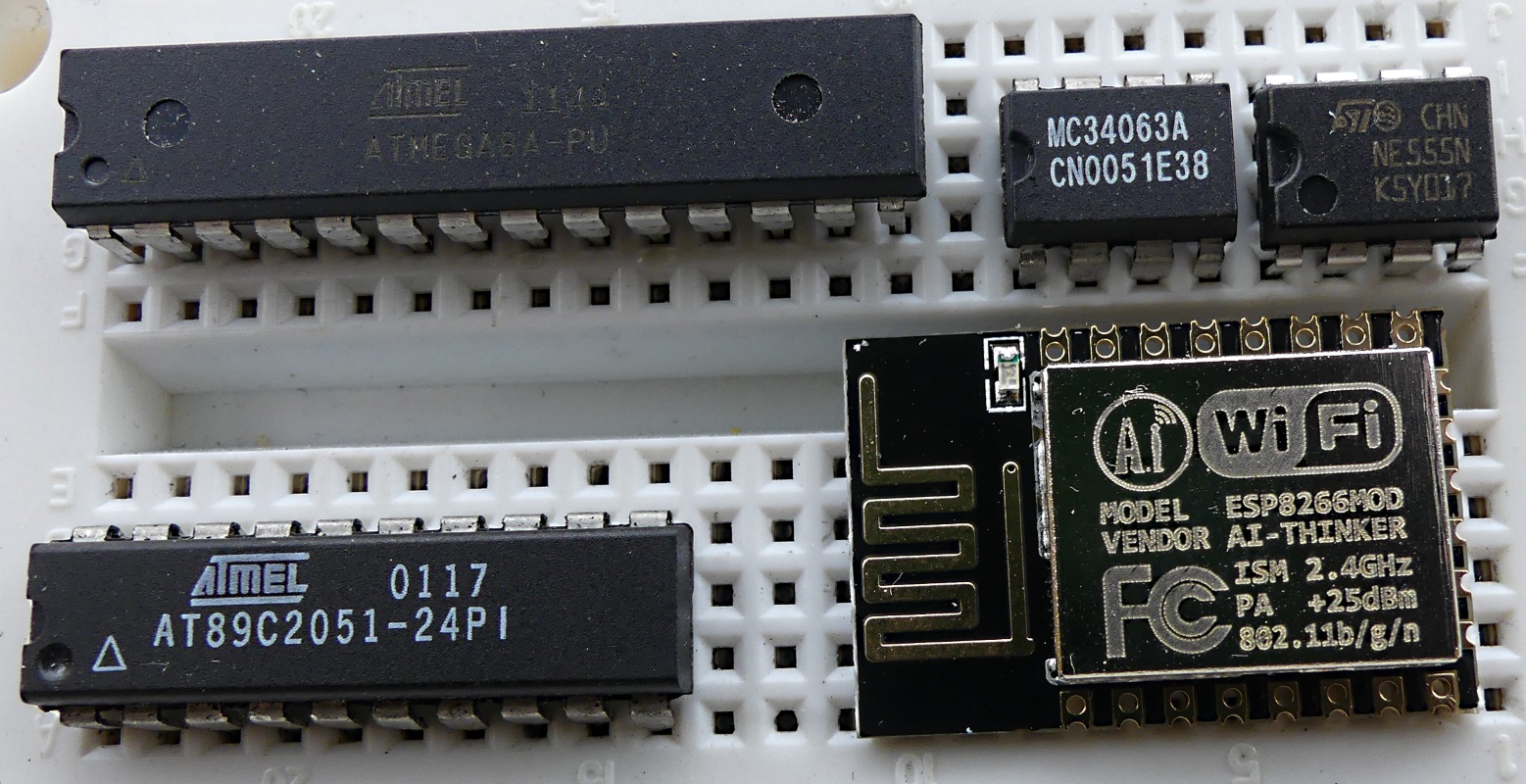 Podobnie leciwy układ przetwornicy buck/bost/iverting MC34063 nadal czasem pojawia się w ładowarkach samochodowych 5V USB. Kolejny przykład to mikrokontrolery np. seria 8051 lub później produkowane przez Atmela wyposażone w pamięć flash szczególnie ATmega 8 lub 328 spopularyzowane przez Arduino, lub tani i o dużych możliwościach moduł WiFi ESP8266.