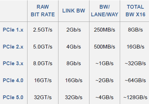 PCIe piątej generacji ma wykorzystywać kodowanie 128/130 bit i dostarczać do 128 gigabajtów na sekundę prędkości transmisji przy 16,4 GB/s na jedną linię. Spodziewać się można, że tego typu interfejs przyjęty zostanie chętnie przez producentów kart graficznych i sieciowych, ale także akceleratorów uczenia maszynowego itp.