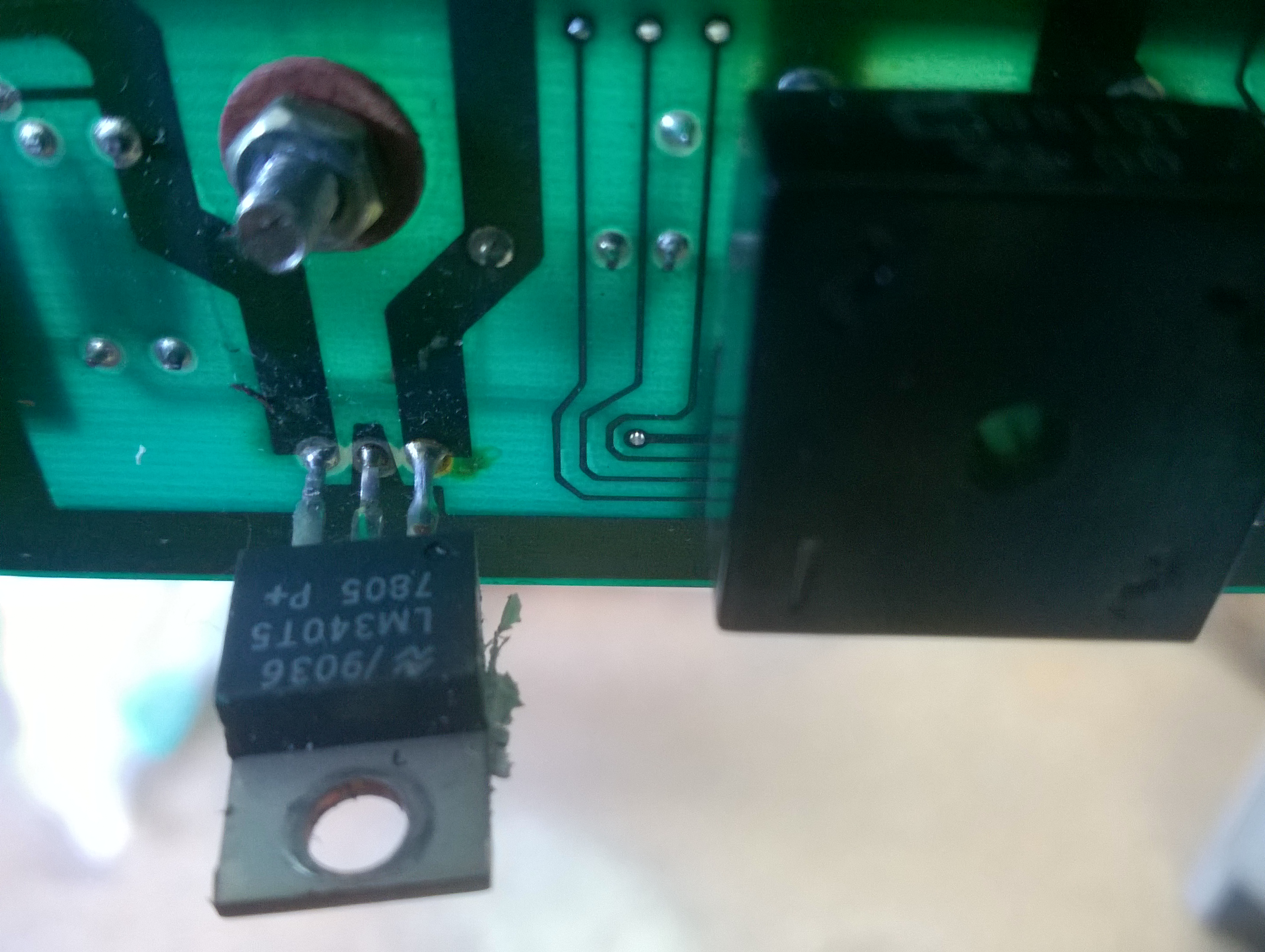 LM340 przykręcony do radiatora, ale tam nie ma chyba radiatora tylko do tej śruby przykręcony?