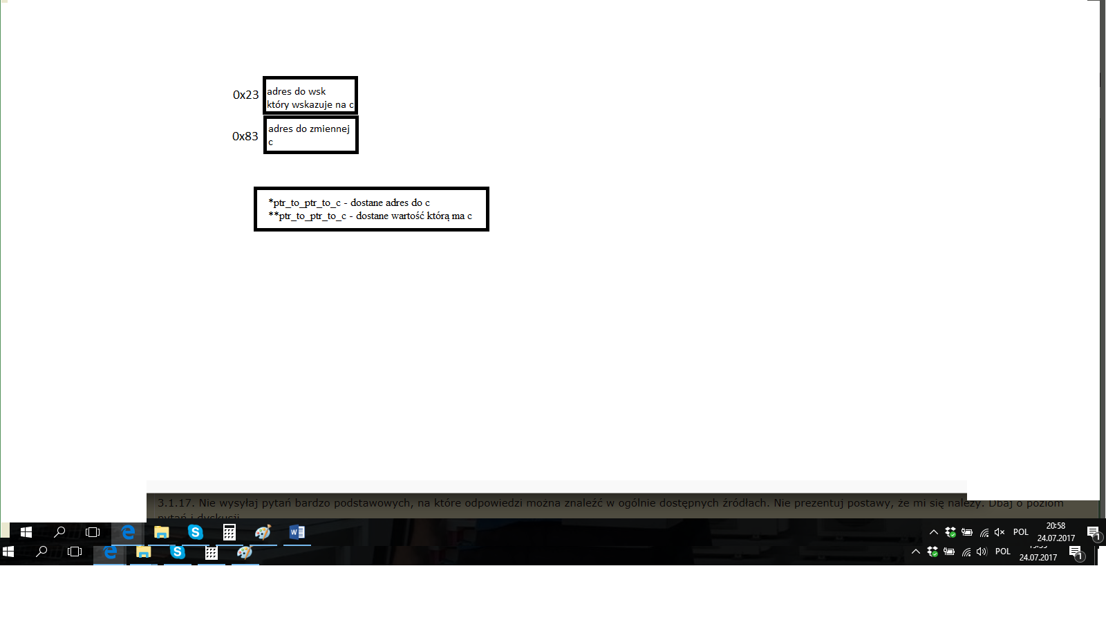 aby "dostać się" do zawartości tego wskaznika muszę zrobić *ptr_to_ptr_to_c a następnie do zawartości c *(*ptr_to_ptr_to_c) a w skrócie **ptr_to_ptr_to_c - nawiasy tylko do zobrazowania.