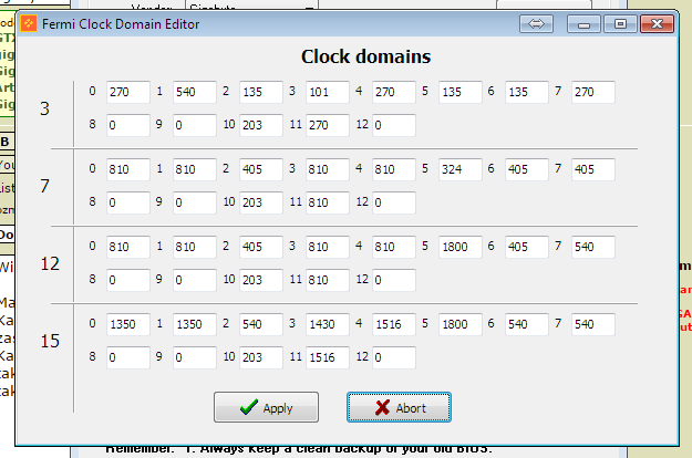 Karta do wyrzucenia ale przedtem chciałem eksperymentalnie obniżyć jej taktowanie i zobaczyć jak się zachowa, np: za pomocą Nibitor-a. Pytanie - które wartości odpowiadają za taktowanie poszczególnych parametrów?