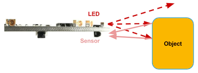 Jak w przypadku wszystkich czujników odbiciowych, to jak dobrze sensor widzi daną przeszkodę wynika z tego jak mocno odbijają one światło. Z tego powodu jaśniejsze obiekty są lepiej wykrywane przez układ niż ciemne.