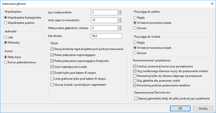 Pytam, bo znaleźć nie mogę. - czy jest możliwość prowadzenia w KiCad ścieżek pod kątem prostym? Potrzebuję odtworzyć PCB, które było tak projektowane, 1:1. Domyślnie ścieżki zaginane są pod kątem 45 stopni (przełącznik "/" pozwala ustalić w którą stronę zaginać), natomiast nie wiem, jak ustawić zaginanie pod kątem 90 stopni.