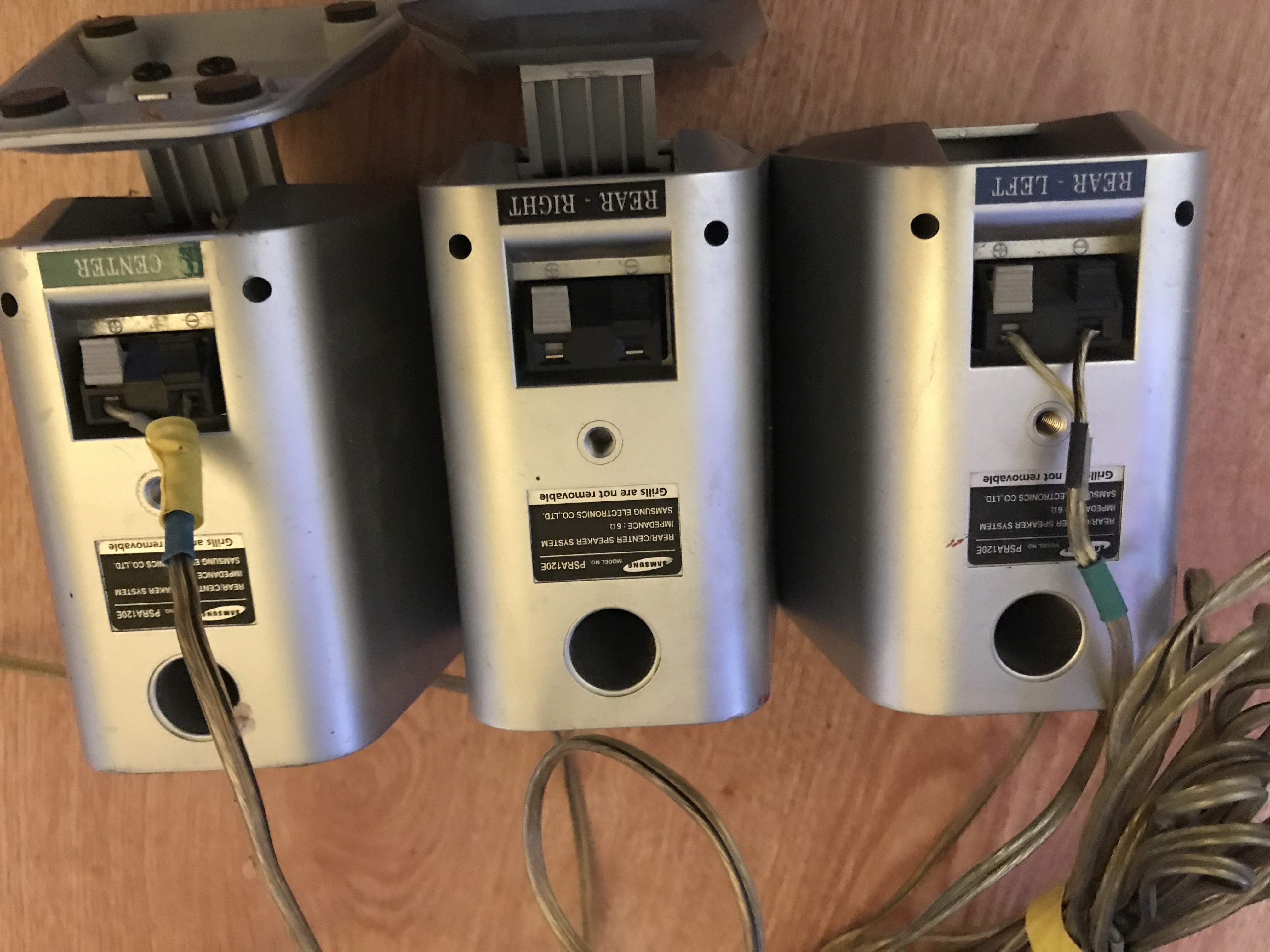 Witam, wygrzebałem na strychu zestaw kina domowego Samsung HT-DB 120, konkretnie kino domowe + subwoofer + 5 głośniczków, wszystko z samsunga wiec zakładam ze było w komplecie. Subwoofer działa, lecz jedynie w 2 głośnikach mam wtyk który mogę włożyć do kina, a reszta ma luźne kabelki. W tych 2 głośnikach są jakby klamry oznaczone czarną lub szarą otuliną, (domyślam sie ze to + i - lecz nie wiem który to który). Wlozone w głośniki prawidłowo, a z drugiej strony przy wtyku do kina domowego są zlutowane w 1 i włożone do wtyku odpowiednio + i -. Głośniki nie działają, teraz moje pytanie jak nazywa sie ten wtyk i ew. jakieś porady jak jest mocowany przewod, jakiś zatrzask lub coś i jak to wyjąć, abym mógł poprawić i włożyć ponownie. W załączniku wrzucam kilka zdjęć. Proszę o wszelkie porady