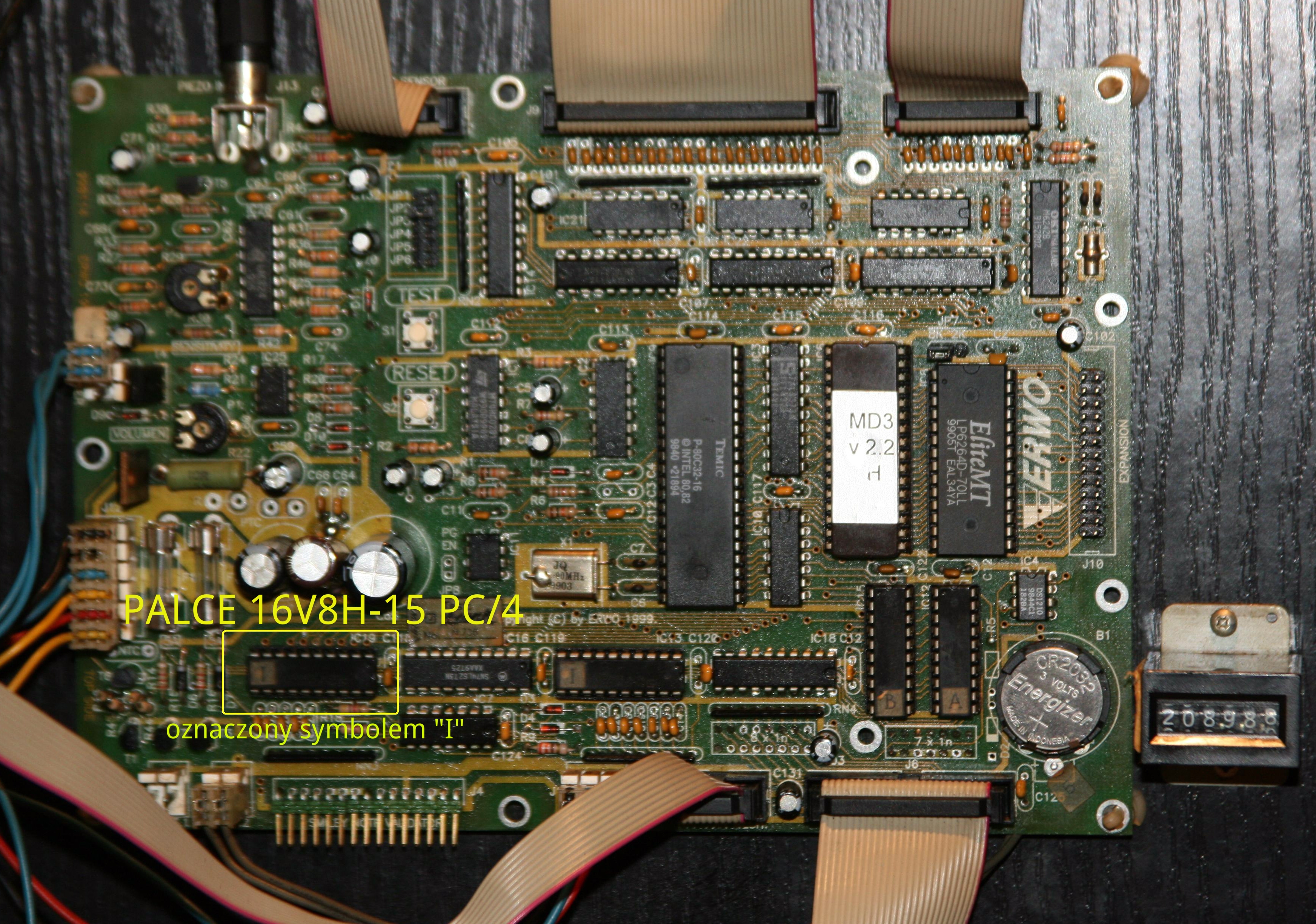 Poniżej zamieszczam zdjęcia całej identycznej maszyny i płyty głównej z lokalizacją potrzebnego mi układu PALCE 16V8H.