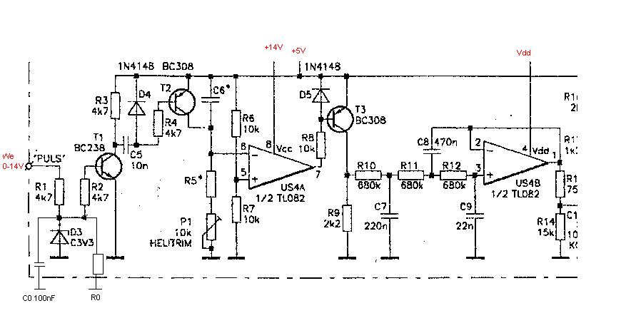 2. Wg opisu ktory mam, na wyjsciu (nozka 1) US4B powinno byc napiecie (w zaleznosci od napiecia We) 0 lub 5V. Tymczasem jest stale ok 1,4 V. Da sie z tego schematu powiedziec dlaczego?