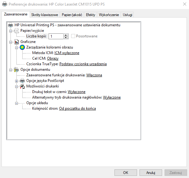 Mam problem z laserowym urządzeniem wielofunkcyjnym: HP Color LaserJet CM1015 UPD PCL 6, a mianowicie szukam oprogramowania all in one, obsługującego funkcję ksero druku i skanera tak jak miałem w urządzeniu HP PSC 1215 na tusze. Niby teraz mam jakieś oprogramowanie, które ustawiło drukarkę w systemie jako domyślną, ale brak oprogramowania do jej pełnej obsługi, komputer nie widzi też skanera, który jest w urządzeniu, gdy w Windows 10 Professional 64 bit wybieram „Rozwiązywanie problemów” to wyświetla mi się komunikat: Urządzenie kompozytowe USB nie może działać poprawnie z portem USB 3.0. Gdy drukuję tekst z „WordPad” jako drukarka domyślna to drukuje tylko w kolorze czarnym, kolorów brak chociaż kolorowe tonery są na poziomie 80%, ale kartkę „Autotestu” urządzenie drukuje w kolorze. Problem leży w ustawieniach i oprogramowaniu do drukarki (dołączam też 3 zrzuty ekranu). Proszę o sugestie jak sobie poradzić z tym problemem ?