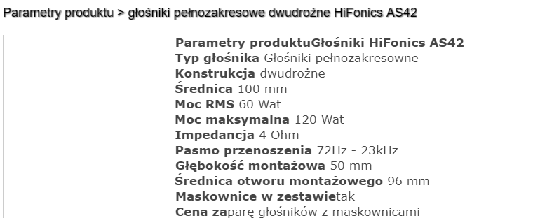 pierwsza lepsza aukcja z aledrogo jakiś chinol... ale pisze 120w a rms 60w radio ma max 50, przyjmijmy ze są to jakieś firmowe glośniki wtedy patrze na 120w czy na to 60 ?