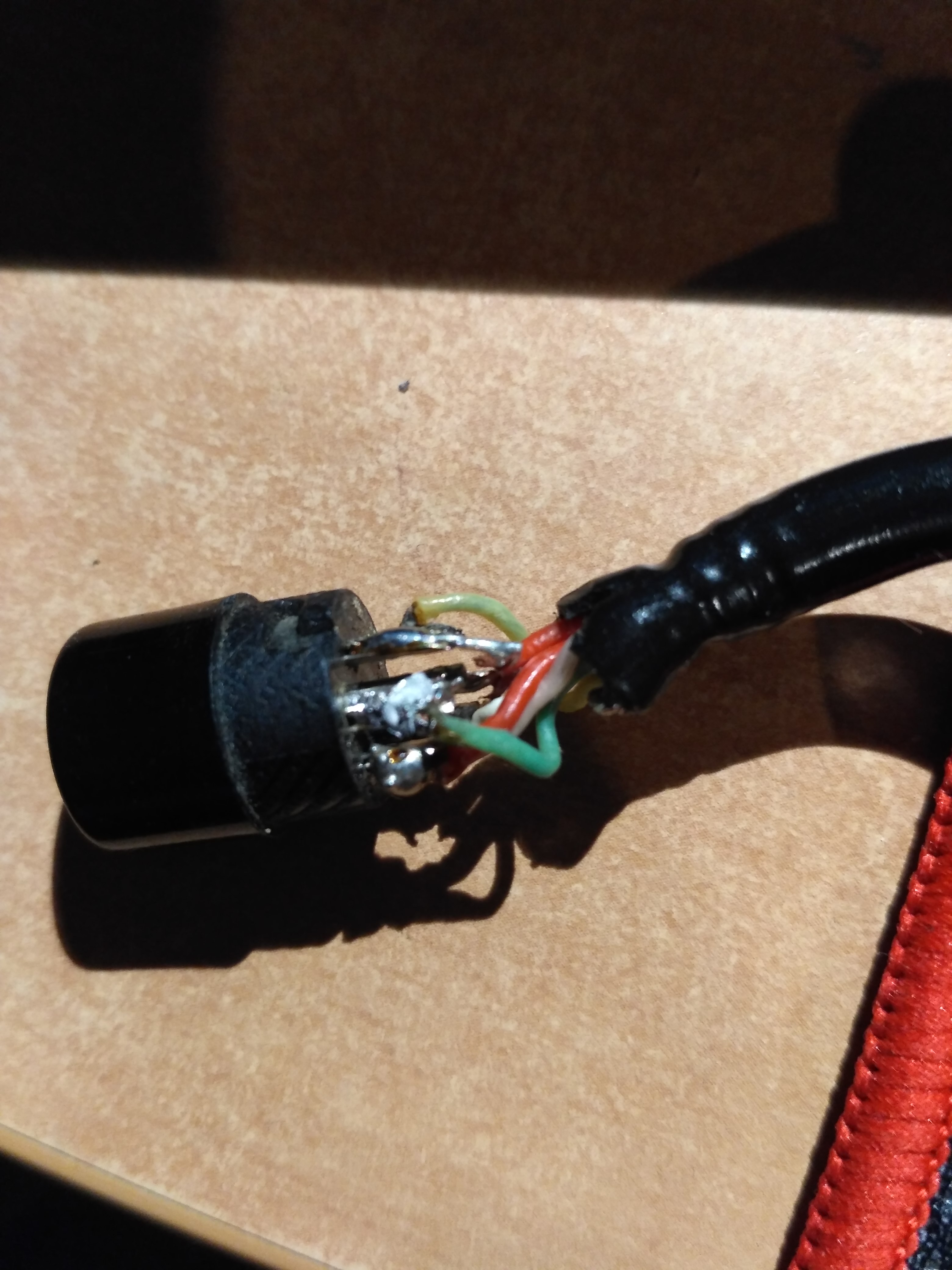 Przewody na taśmie wychodzące z wtyku mikrofonowego: