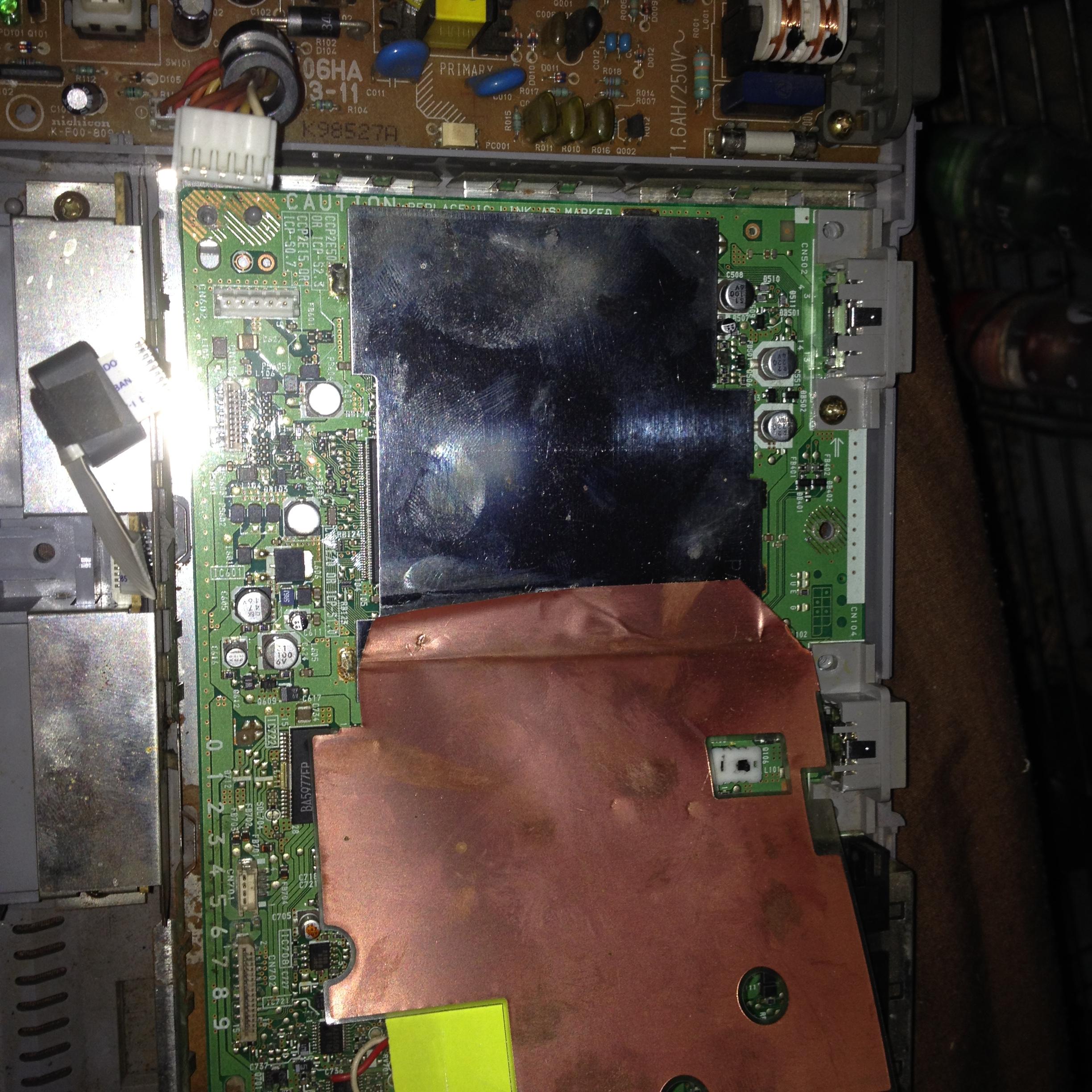 Witam, kupiłem na targu rupieci konsole psx, po podłączeniu jej do tv nie wyświetla obrazu i nie ma dźwięku, płyta nie rusza. Rozkręciłem konsole i okazało się że jest nawet przerobiona, przeczyściłem trochę, rozłożyłem i złożyłem i nic. Na pewno mogę wykluczyć wadliwy kabel do tv bo mam ps2 i sprawdziłem. Dioda po włączeniu świeci na zielono ale zero reakcji TV i płyta nawet nie drgnie po zamknięciu klapki. Dodaję zdjęcia płyty głównej jak coś pomogą, proszę o poradę czy coś mam pomierzyć itp.