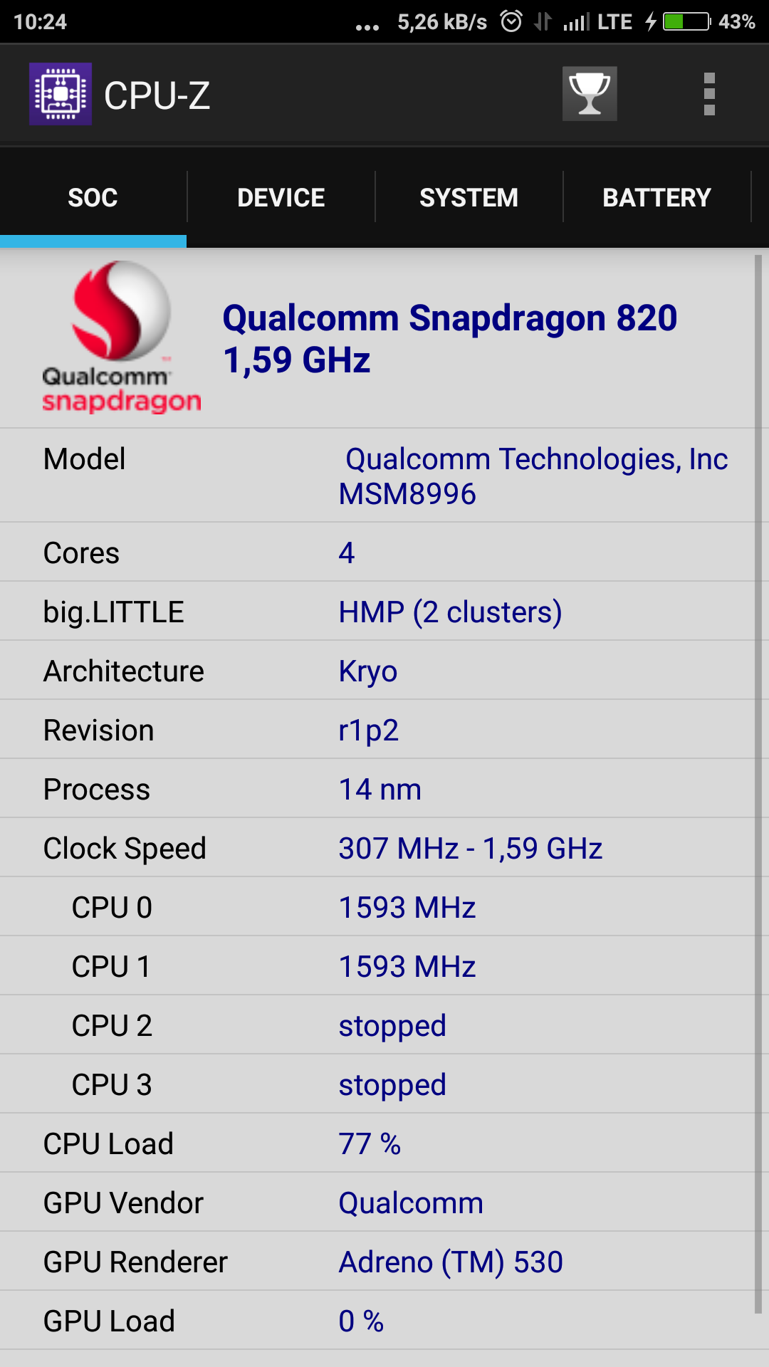 Witam, otóż pojawiła mi się pewna wątpliwość odnośnie taktowania procesora Xiaomi Mi5. Otóż według producenta powinno być 4 x 2.15 z racji, że jest to Qualcomm Snapdragon 820 aktywne są tylko 2 rdzenie 1,56 GHz. Czyżby podróbka? Poniżej wrzucam zrzuty ekranów z kilku apek monitorujących.