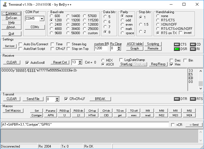 Niby wszystko dobrze podłaczone i skonfigurowane, ale coś jest źle bo na terminalu , po użyciu PRINT, widać krzaczki zamiast znaków.