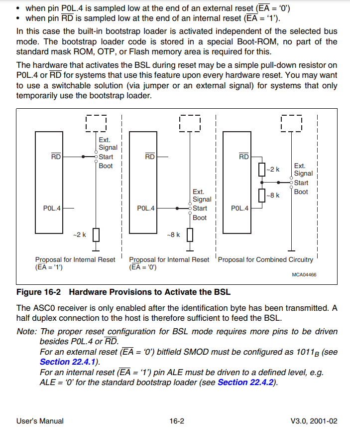 Z tego co zrozumiałem po lekturze DS tego procesora - w zewnętrznej pamięci znajduje się m.in. config, odczytywany aby ustawić rejestry procesora. Cała procedura kończy się instrukcją EINIT i wystawieniem H na RSTOUT .