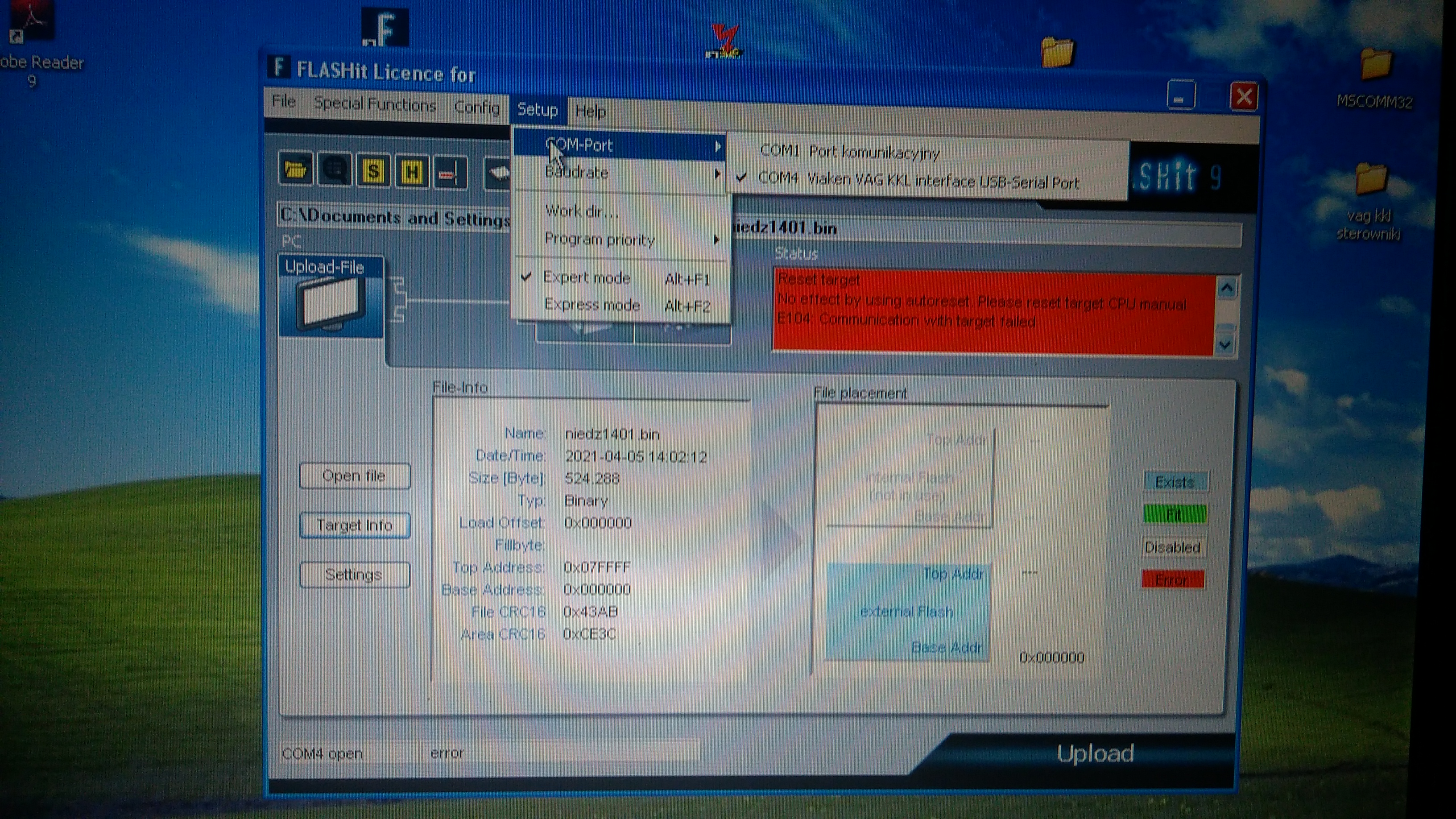 W manualu do ST10Flasher jest wzmianka o potrzebie wymuszenia komunikacji z Flashem - jak to zrobić ?