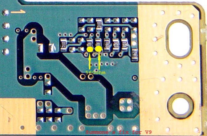 4. Ponadto w konsoli v9 powinno być zastosowane zabezpieczenie sumeone-fix, czyli nic innego jak rezystor (limiter) przylutowany w odpowiednim miejscu na płycie (załącznik). Chroni cewkę trackingu przed spaleniem.