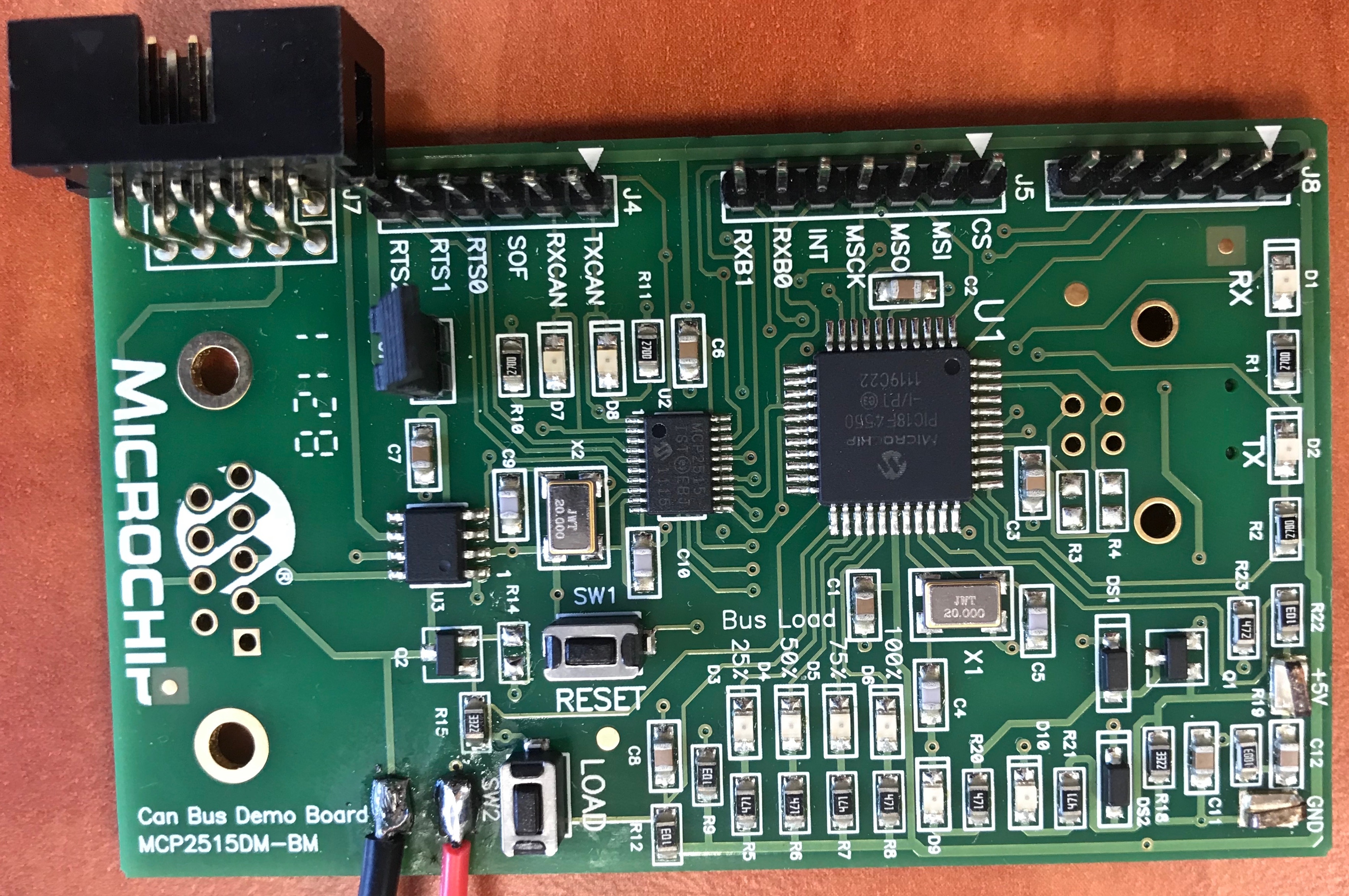 Sprzedam zestaw demo układu MCP2515 firmy Microchip - Link. Zestaw był używany, jest w pełni sprawny. Na zdjęciach widoczne drobne przeróbki płytki - z jednej zostały usunięte złącza. Zestaw zawiera dwie płytki demonstracyjne oraz kabel umożliwiający ich połączenie po sieci CAN (konieczność dolutowania złącza).