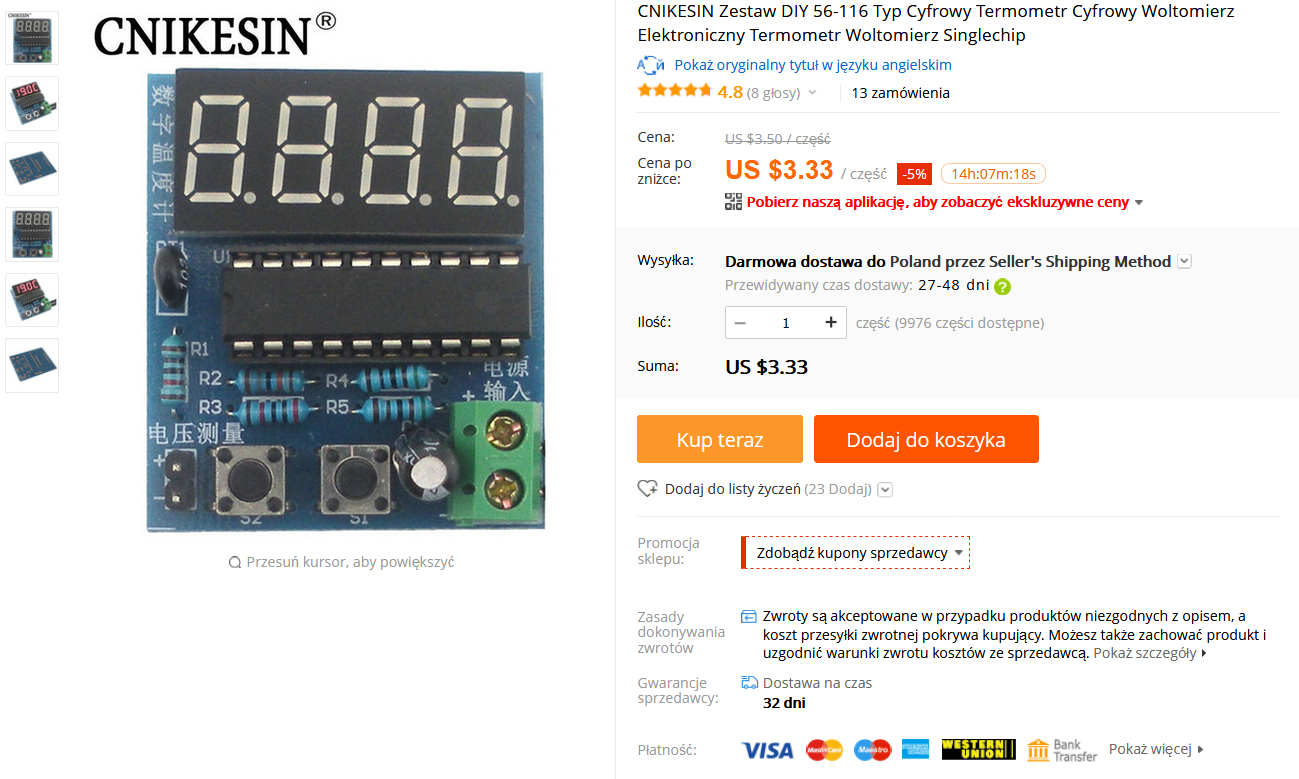 Tym razem specjalnie dla was poskładałem i przetestowałem chiński termometr cyfrowy z możliwością pomiaru napięcia DC do 50V.