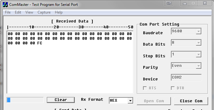 Potrzebuję ustanowić połączenie 9600, słowo: 8 bitów, parity: even, bit stop: 1