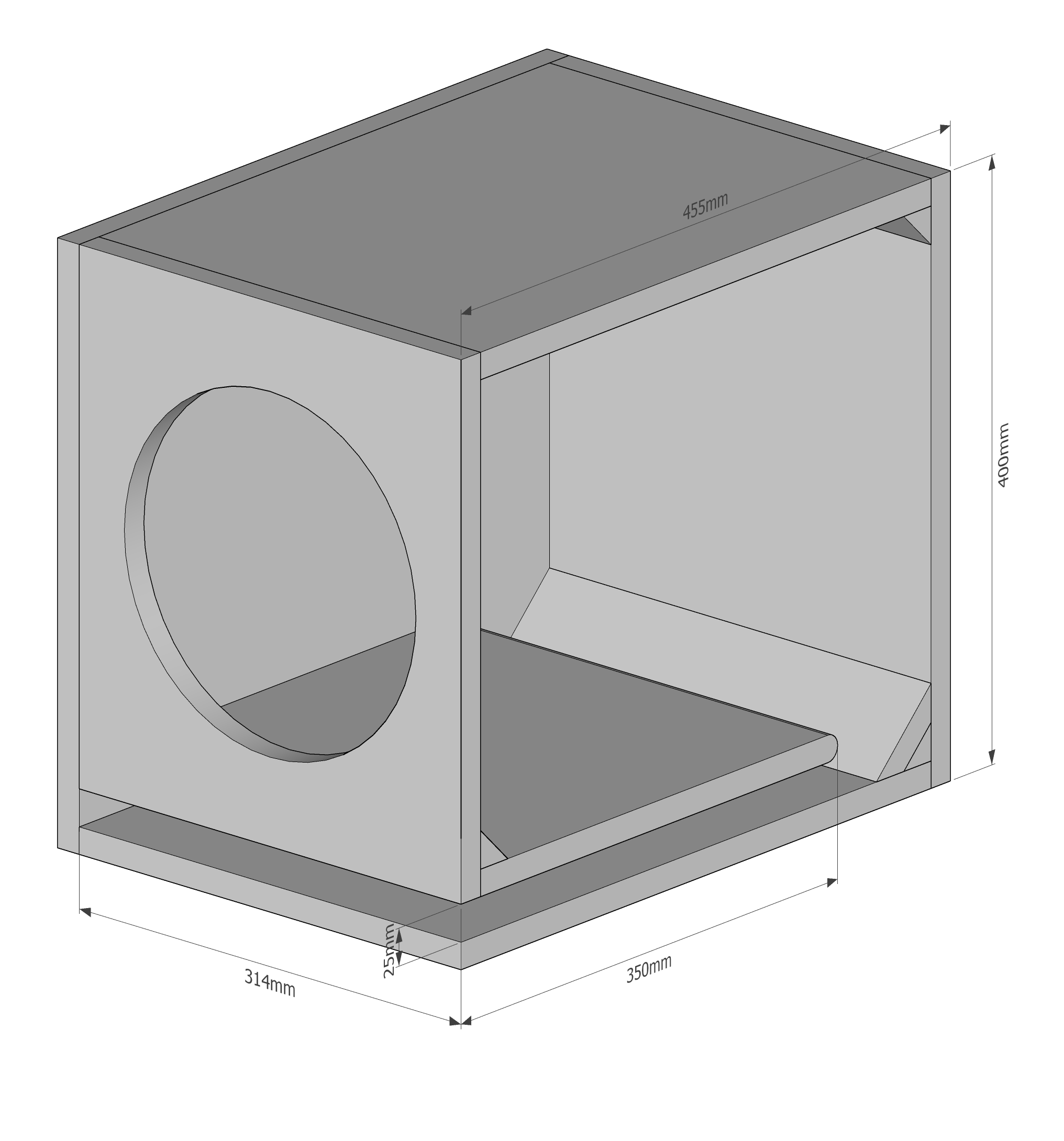 Zrobiłem (po raz pierwszy) skrzynię szczelinową dla Rockford Fosgate P2D2-10 płyta MDF 18mm, dokładnie taką jak na obrazku.