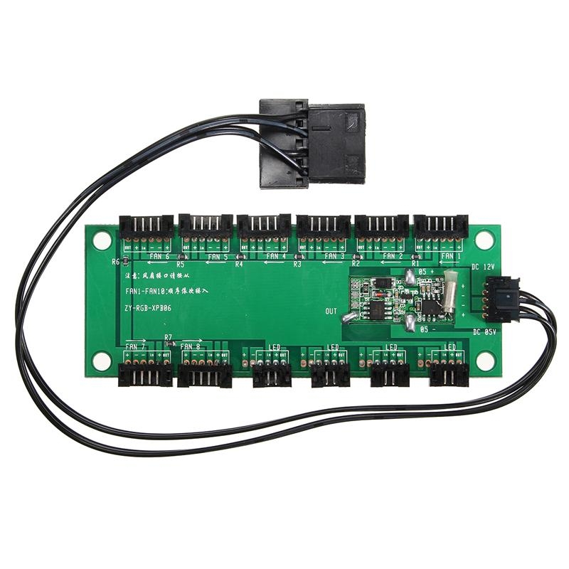 Podejrzewam że + i - po prawej są pinami od wentylatora, a reszta steruje paskiem LED WS2812B.