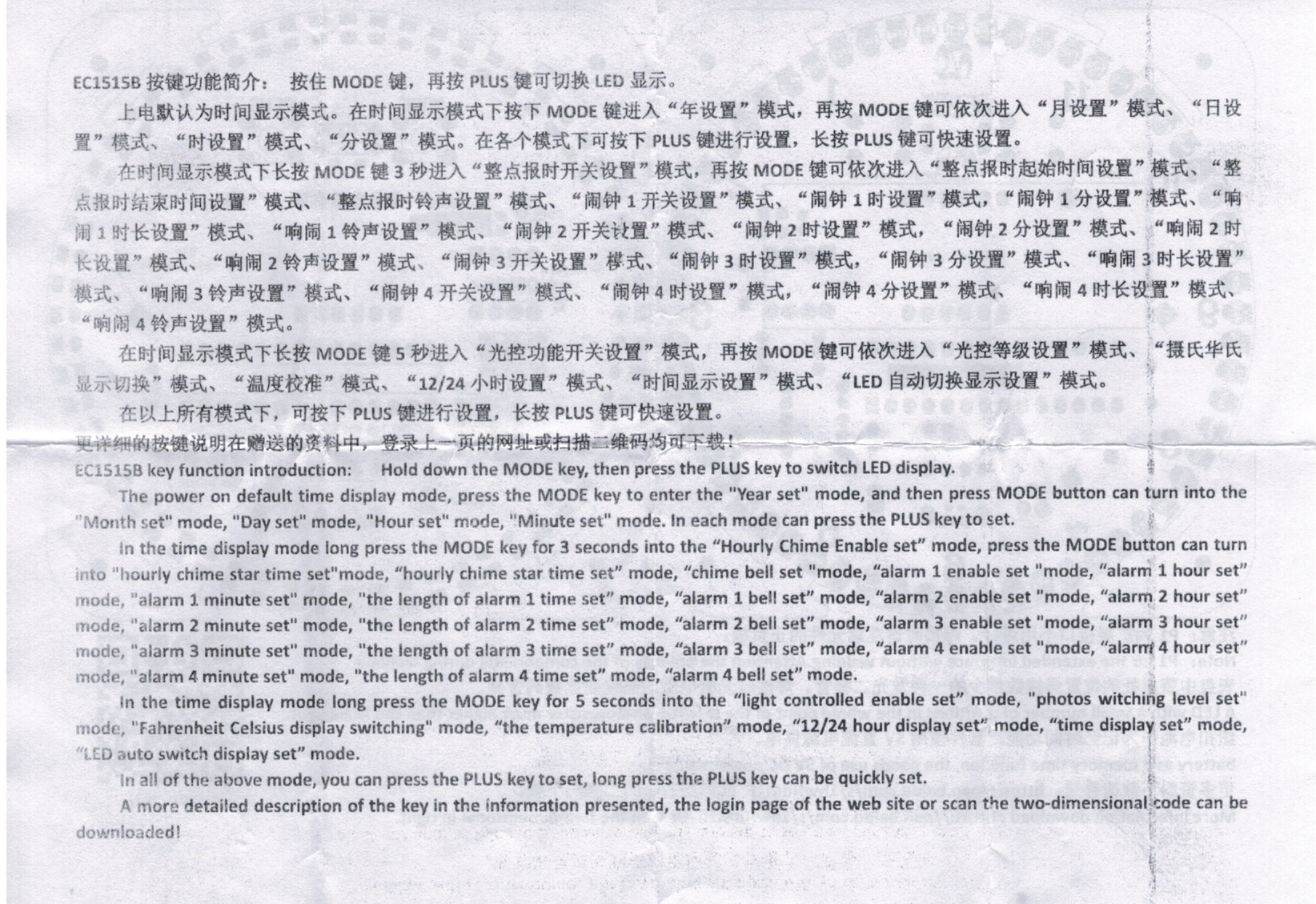 Poniżej załączam skan instrukcji. Na chwilę obecną nie mogę się połapać, o co chodzi z ustawieniami w punkcie traktującym o "CHIME" czyli brzęczyku, bo na ten przykład, obecnie na chwilę przed każdą pełną godziną, zaczyna "drzeć mordę" a potem punktualnie o pełnej godzinie miga bardzo jasno wszystkimi diodami. Z instrukcji wynika, że da się to wyłączyć, ale i co gorsza, niechcący włączyć inne alarmy. Niestety po wejściu w to menu, nic nie rozumiem. Powinna być jakaś tabelka umożliwiająca identyfikację poszczególnych ustawień. Jest strasznie rozbudowane, a wszystko praktycznie opiera się na "kodach cyfrowych". Niektóre ustawienia mają nawet sześćdziesiąt poziomów nastaw. Musiałbym najpierw rozrysować to menu, a potem kombinować z nastawami, ale jakoś nie bardzo mi się chce. Najpierw poszukam, może gdzieś jest jakaś ściągawka. Póki co ustawiłem wszystko na OFF.