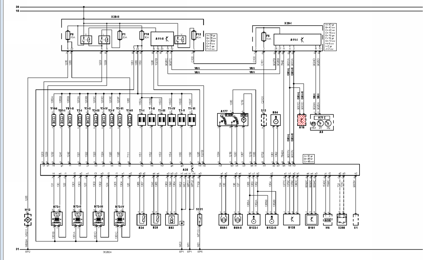 Na przykład pin A f1 znajduje się w 32 pinowym złączu szarym na pozycji f1