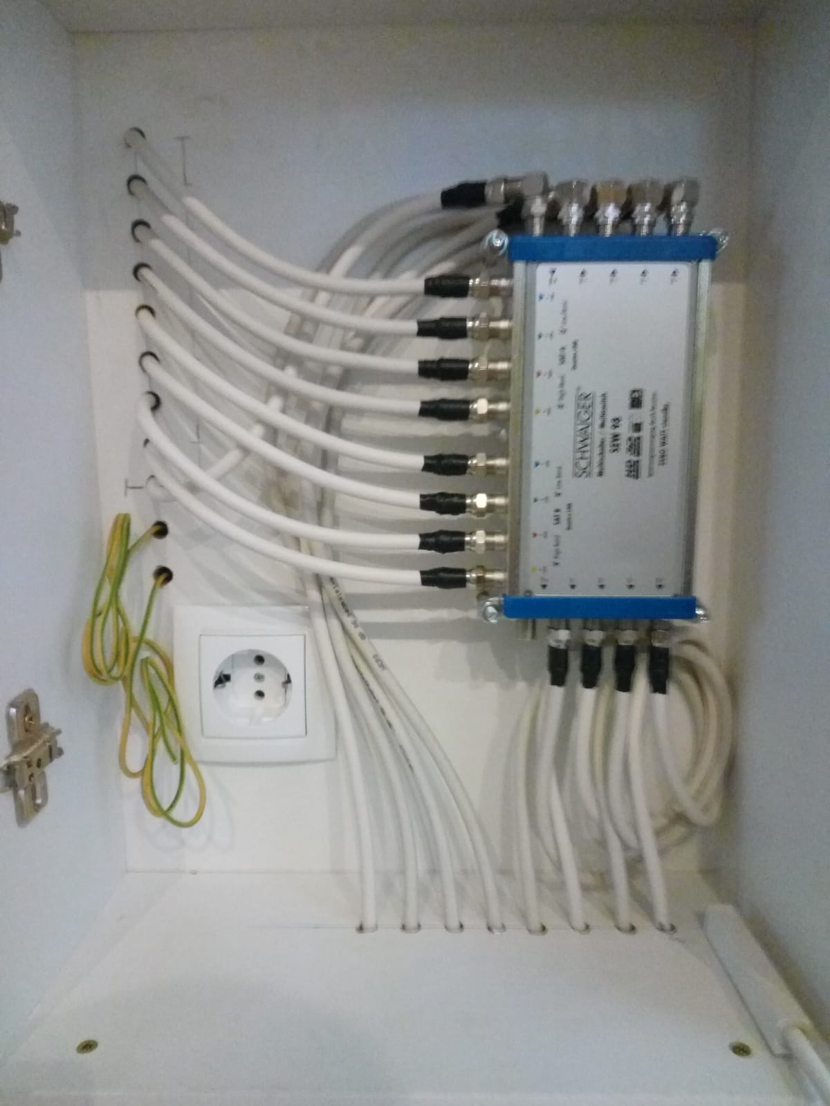 Multiswitsch 9/8 z zasilaczem. Astra + Hotbird, tu wszystko dziala. 2x LNB Quattro i 8 punktow odbiorczych.