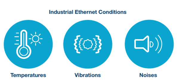 Projektując standardy przemysłowego Ethernetu koniecznie trzeba uwzględnić szereg dodatkowych wymagań, które nie są istotne z punktu widzenia, np. sieci zainstalowanej w biurze. Przykładowo w fabrykach często sieć i urządzenia mogą być narażone na podwyższoną lub obniżoną temperaturę, wibracje, etc.