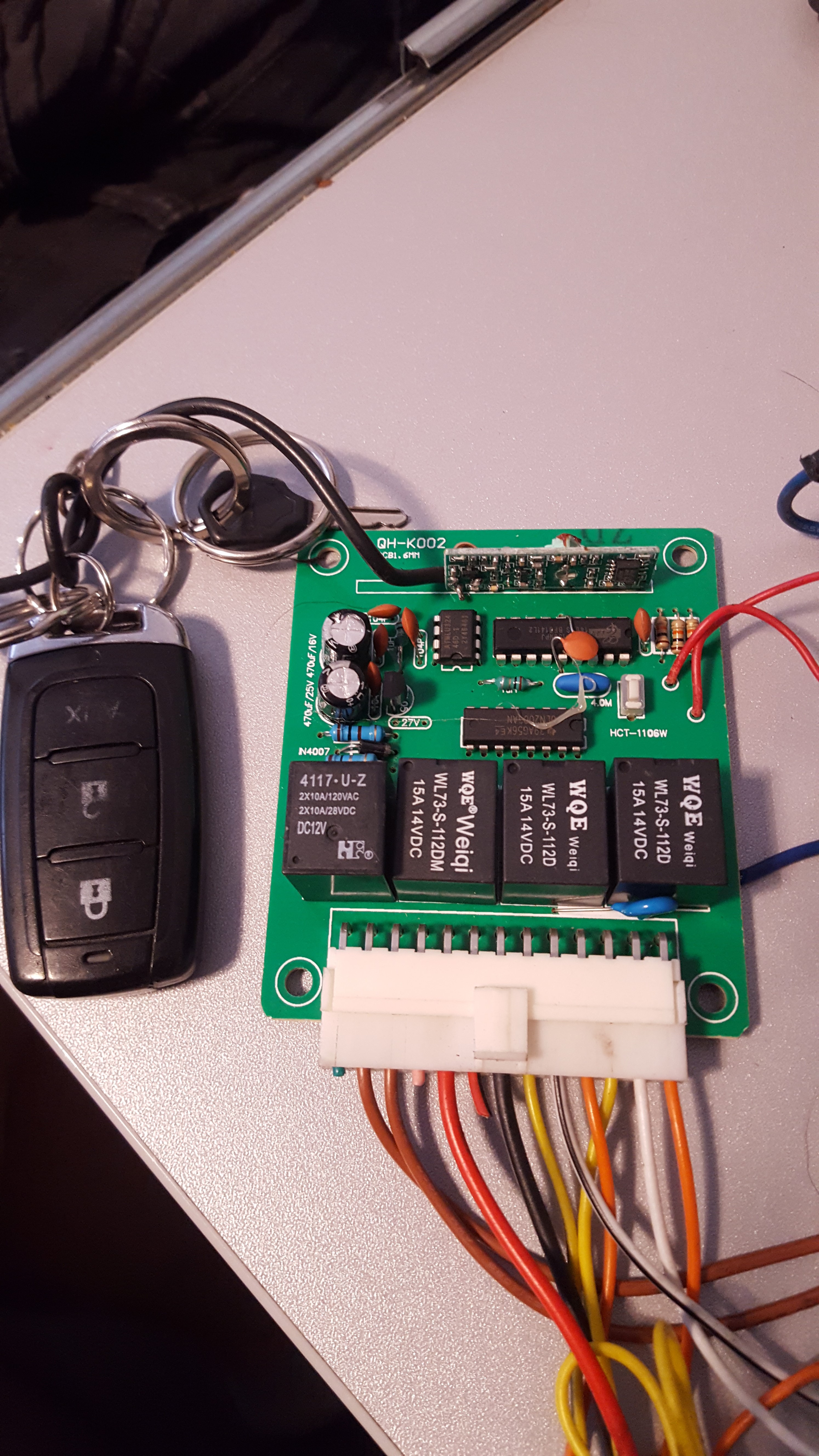 Pętla z czerwonego przewodu z prawej strony płytki służy do zmiany długości impulsu zamka. Zwarta to 0,5-0,8s, rozcięta 3,5-4,0s