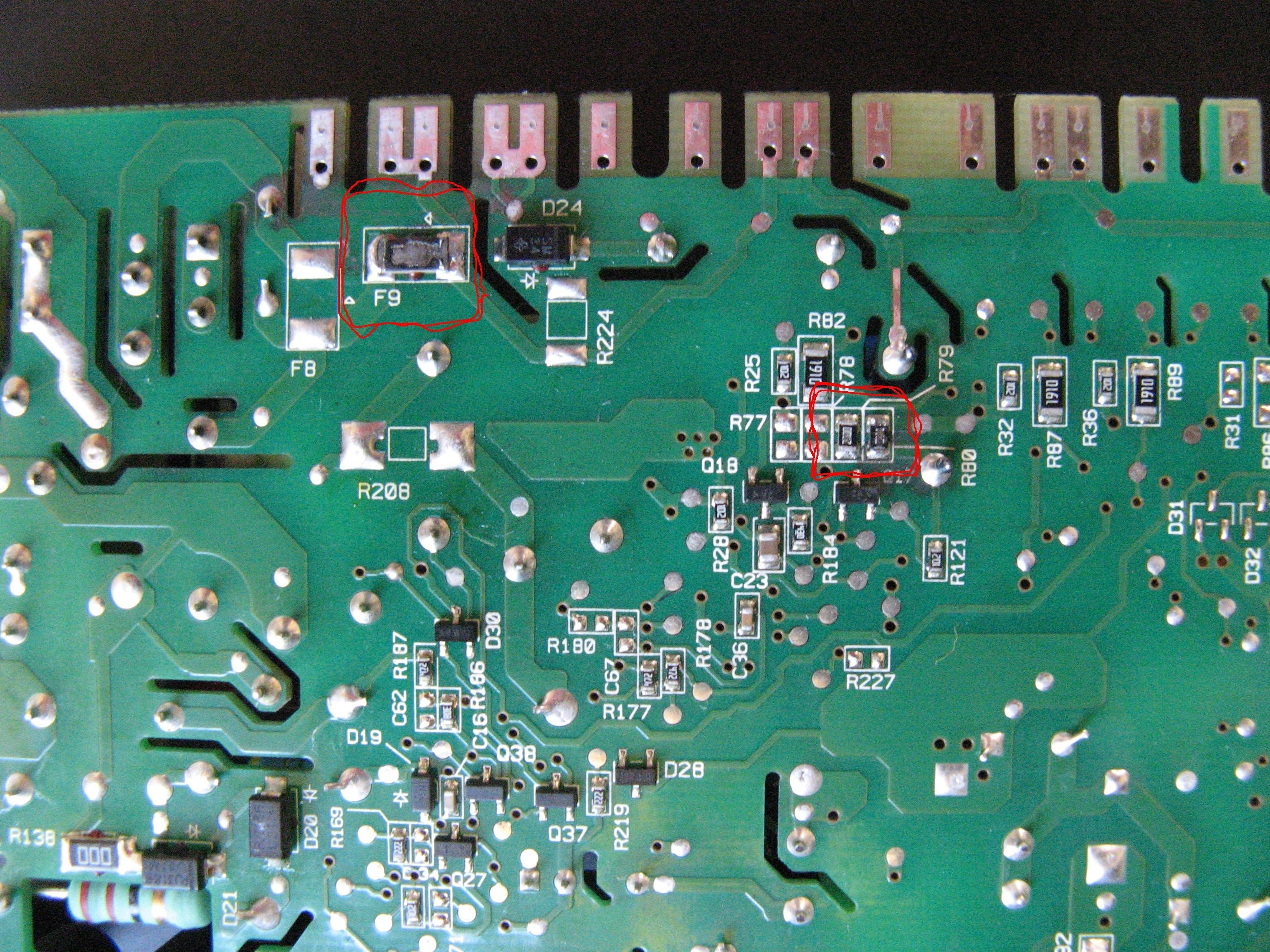 Pooglądaj jeszcze raz elementy i posprawdzaj przelotki w okolicach elementów uszkodzonych... W swojej awarii miałem tak, że zmywarka nie chciała działać przez to, że nie było przejścia na wszystkich 3 przelotkach obok siebie... mimo, że wizualnie w ogóle nie dało się tego zauważyć. Posprawdzaj też triaki, służą do sterowania mniejszymi elementami- zaworami, pompkami etc.