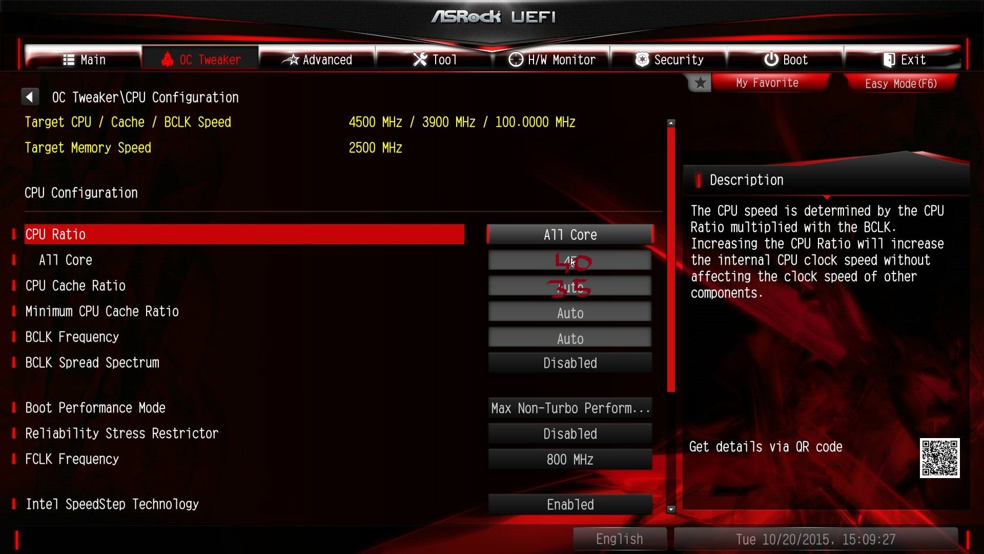 Podkrecilem moj procesor do 4.0 ( 40 ) CPU cache ratio do 35. Zmienilem tez napiecie do 1.3 FIXED . Dalem XMP profile 1. Zmienilem tez predkoscwiatraka wentylatora na CPU na maxymalne obroty.