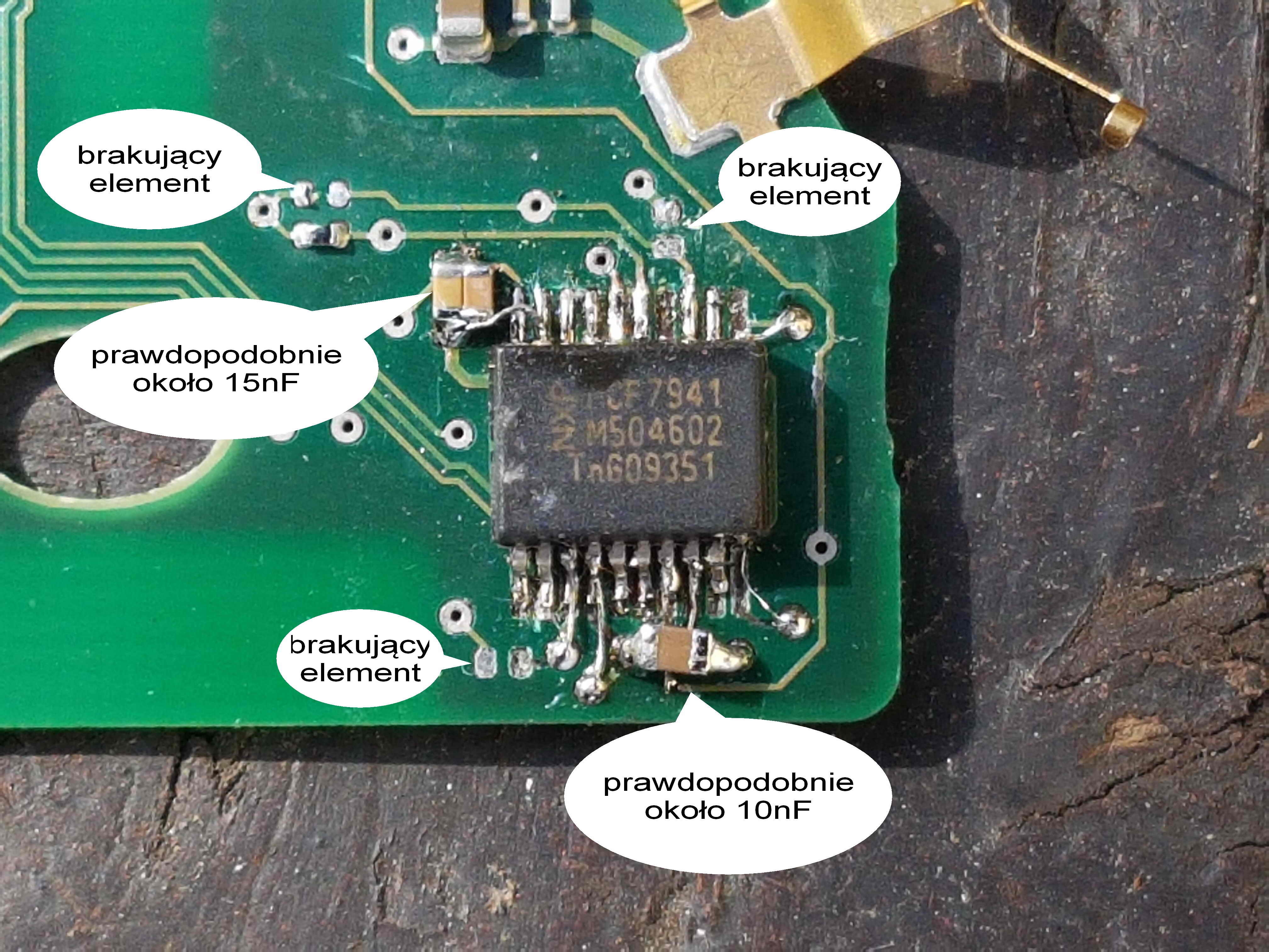 Witam , pilot od renówki dotarł w częściach w stanie agonalnym a szczególnie pcf7941 który miał poodrywaną część nóg , płytka też nie była " pierwszej świeżości " jednak że pilot jest jeden trzeba go reanimować . Mam do kolegów prośbę o informacje na temat elementów SMD znajdujących się w środowisku danego PCF7941 którego po wielkich trudach udało się " zainstalować " do płytki . Przesyła zdjęcia z zaznaczonymi brakami SMD , chociaż szukając w sieci 2 elementy ,jak mniemam , są prawidłowe , za pomoc dziękuje i pozdrawiam