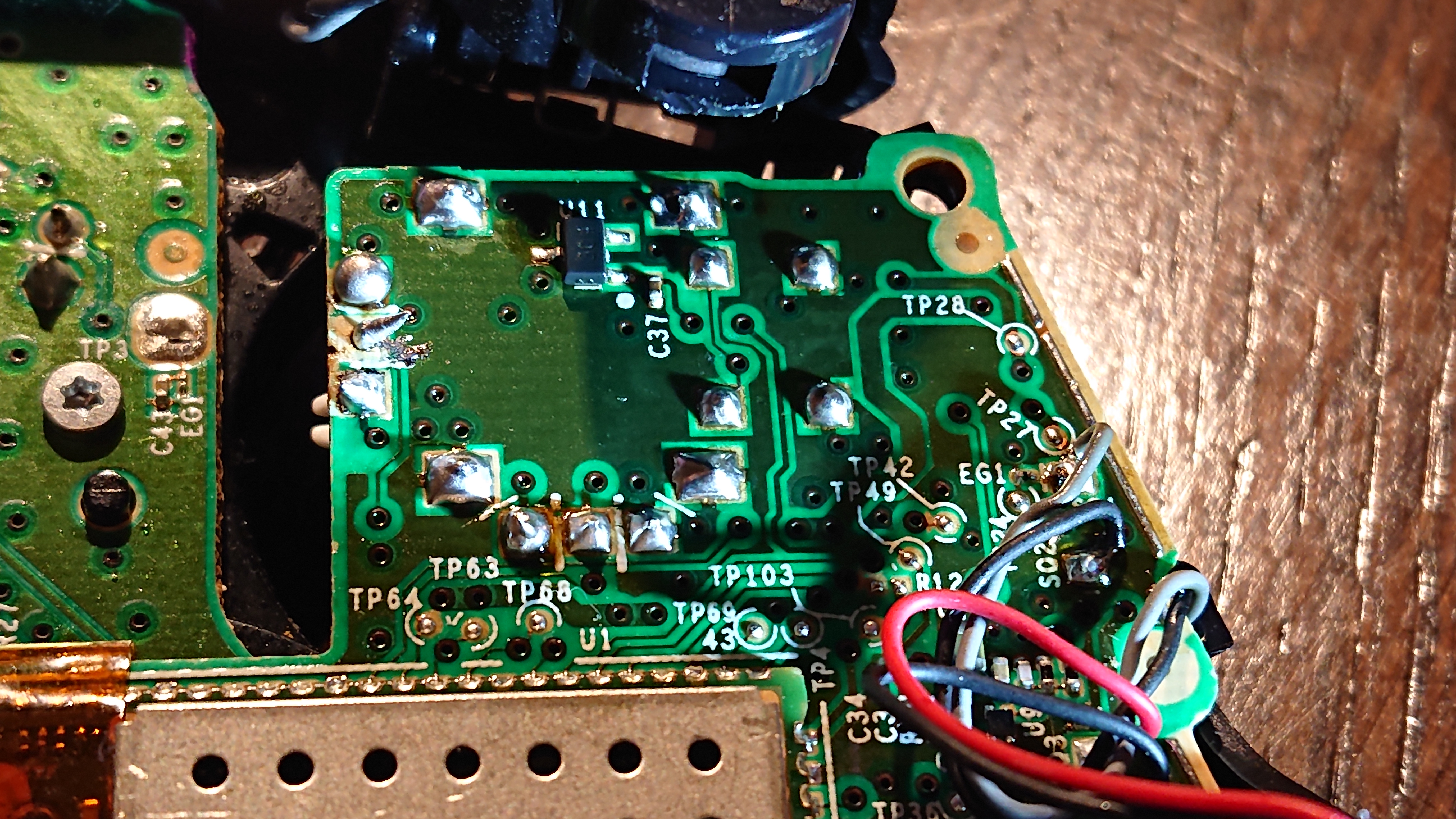 Hej panowie elektronicy problem jest następujący, zakupiłem nowy analog do Pada Xbox One S, przy próbie wylutowania starego zepsutego początkowo próbowałem zrobić to samym grotem, który lekko był podniszczony w sensie nierówny poszarpany, co w efekcie na moje oko skończyło się zbyt długi rozgrzaniem płytki i zdarciu ścieżki. Resztę usunąłem przy pomocy kalafonii i linki miedzianej do rozlutowywania. Efekt taki, że jeden z pinów podczas lutowania nie łapie się z płytką i co logiczne nie ma styku i pad nie działa w dół. Pytanie do was czy da się gdzieś w inne miejsce doprowadzić jakiś nawet przewodzik żeby ten pin działał tak jak powinien. Nie jestem aż tak biegły w elektronice żeby samemu stwierdzić w które miejsce doprowadzić przewodzik, ale na 99% jestem pewny, że to nie jest koniec życia pada