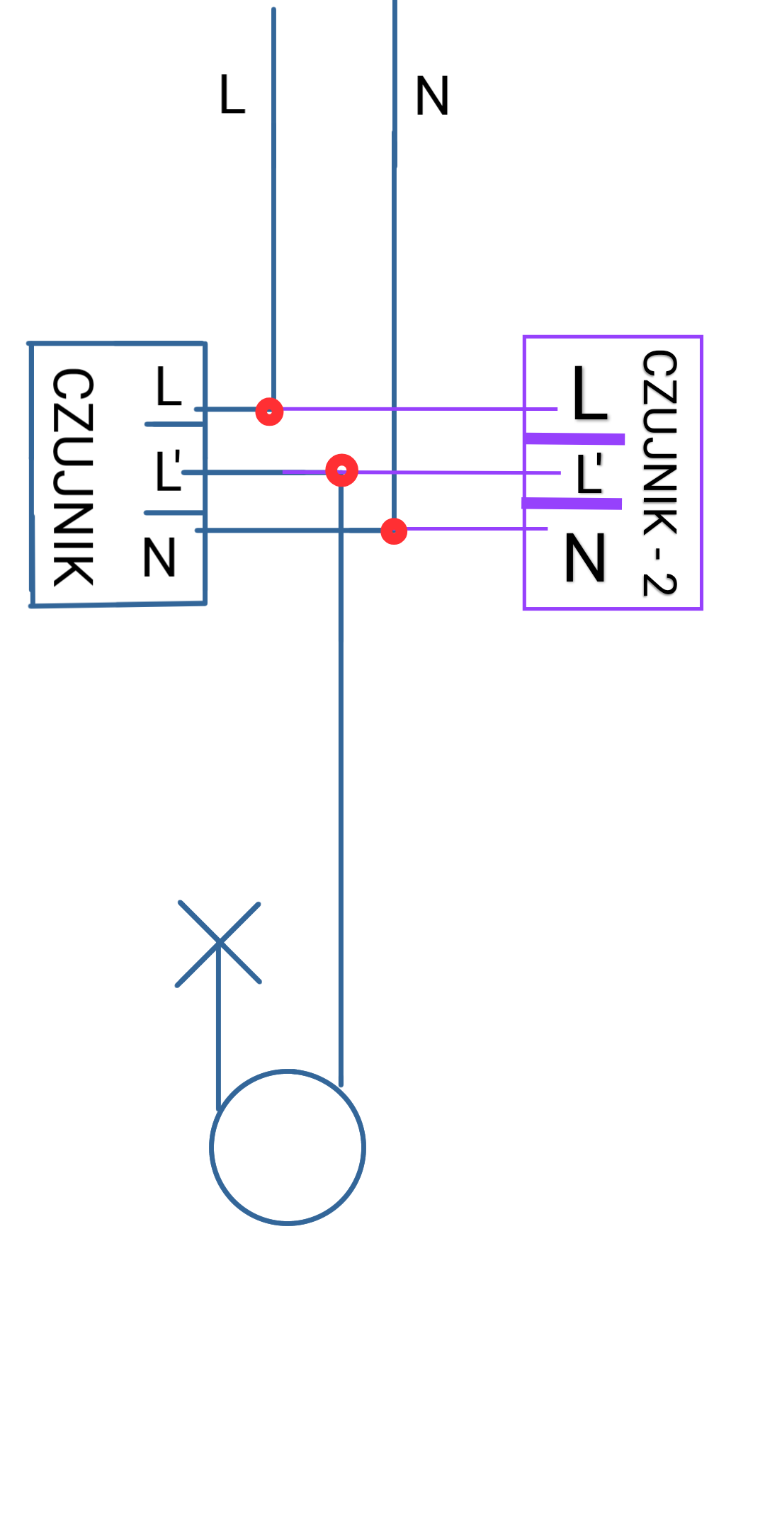 Potrzebuję podłączyć razem dwa czujniki ruchu, po to by żarówki zaświeciły się gdy idę z jednej lub drugiej strony.