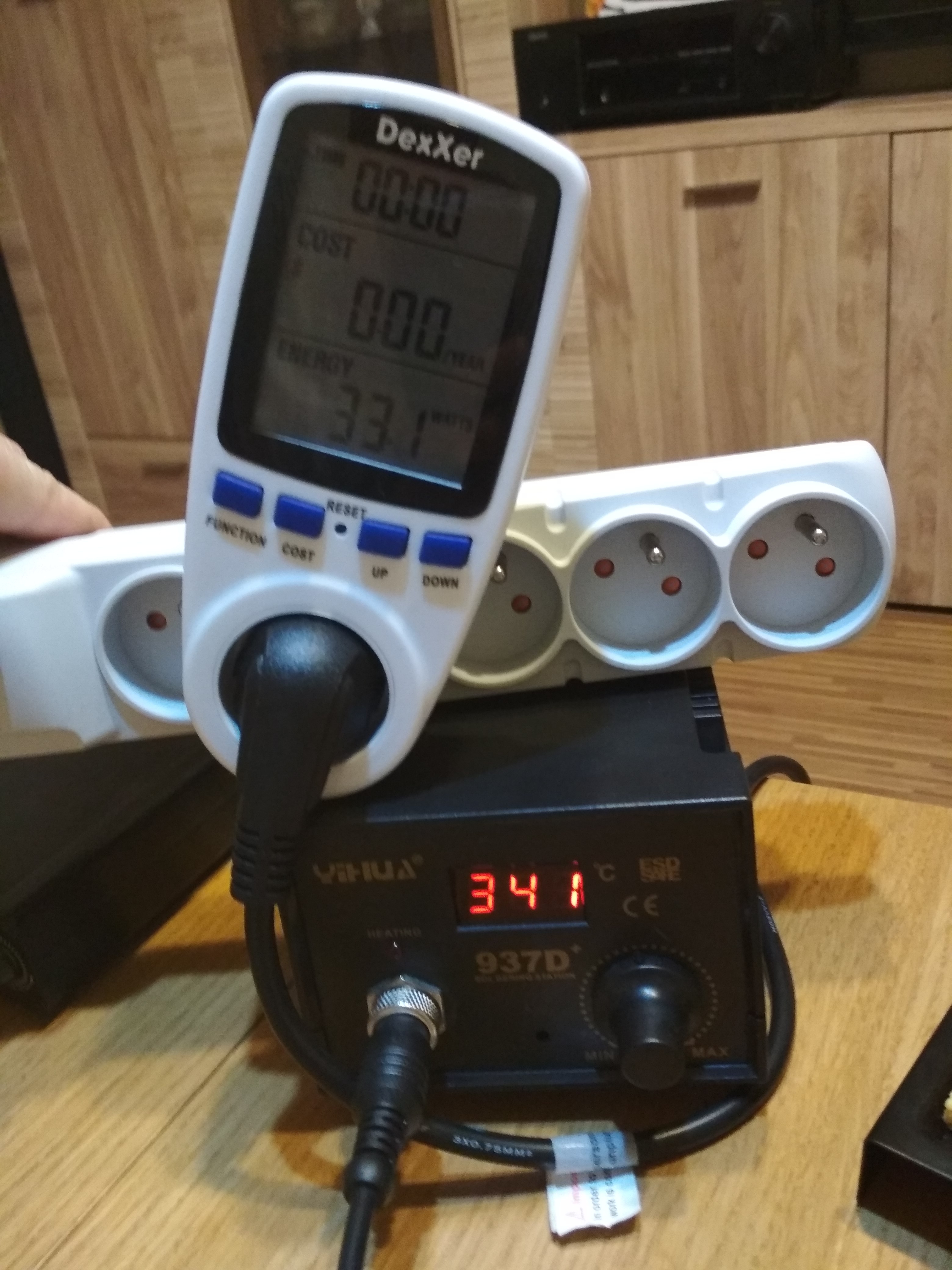 Do pomiarów mocy wykorzystałem watomierz DexXer o parametrach (wg tabliczki znamionowej):